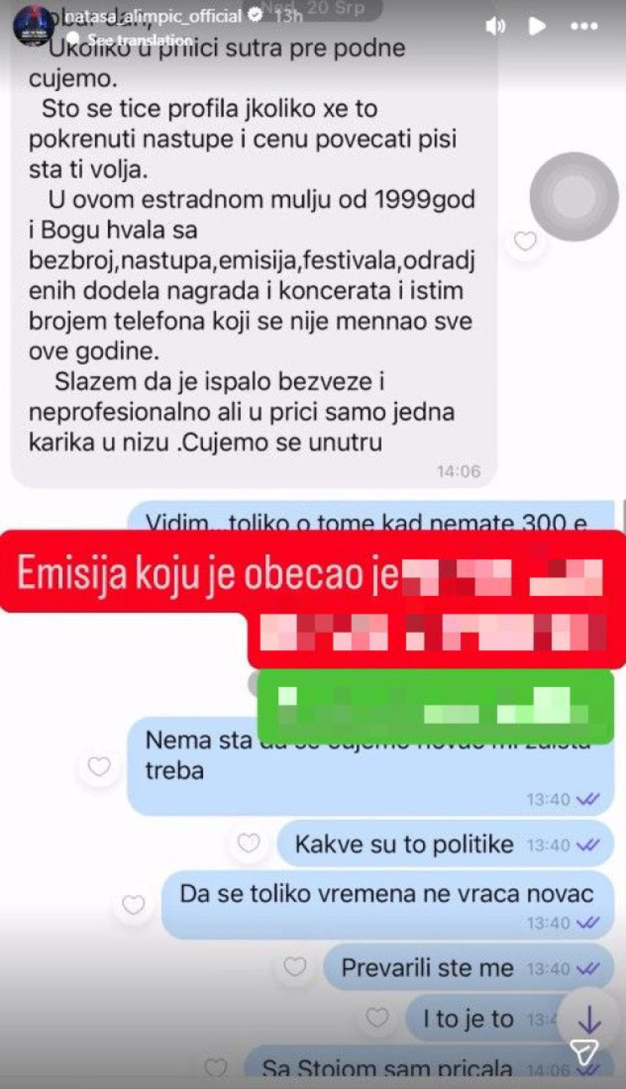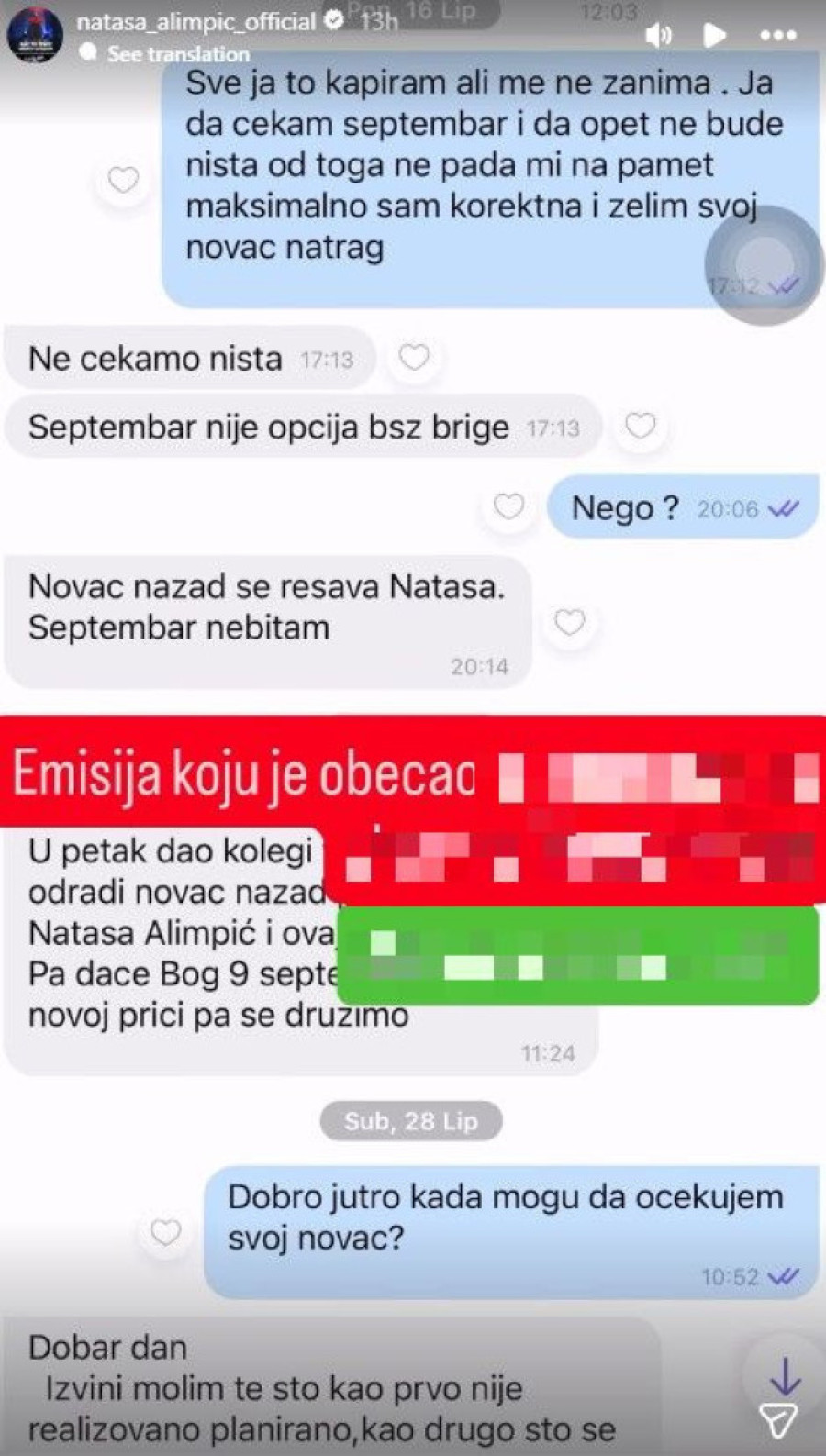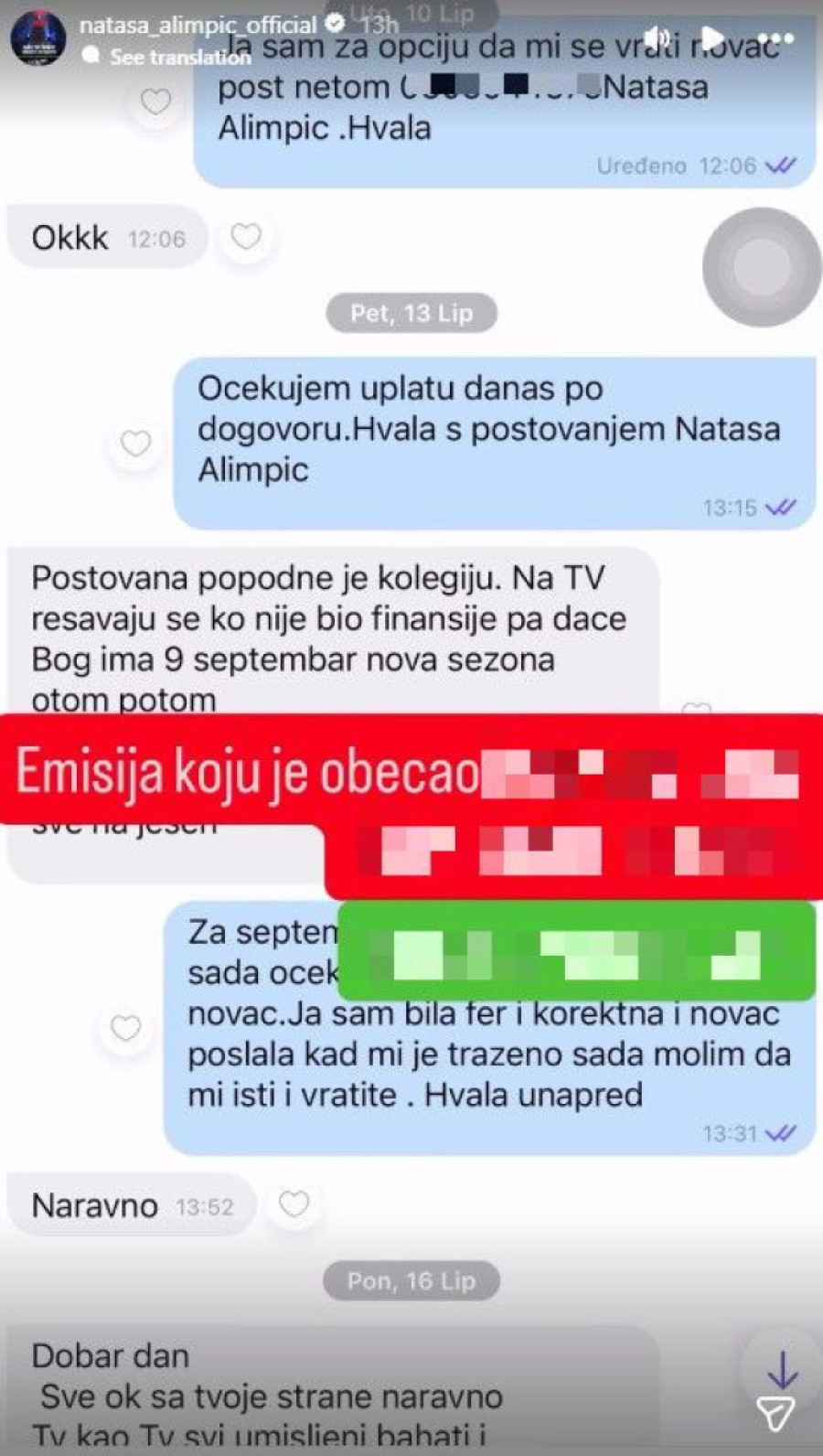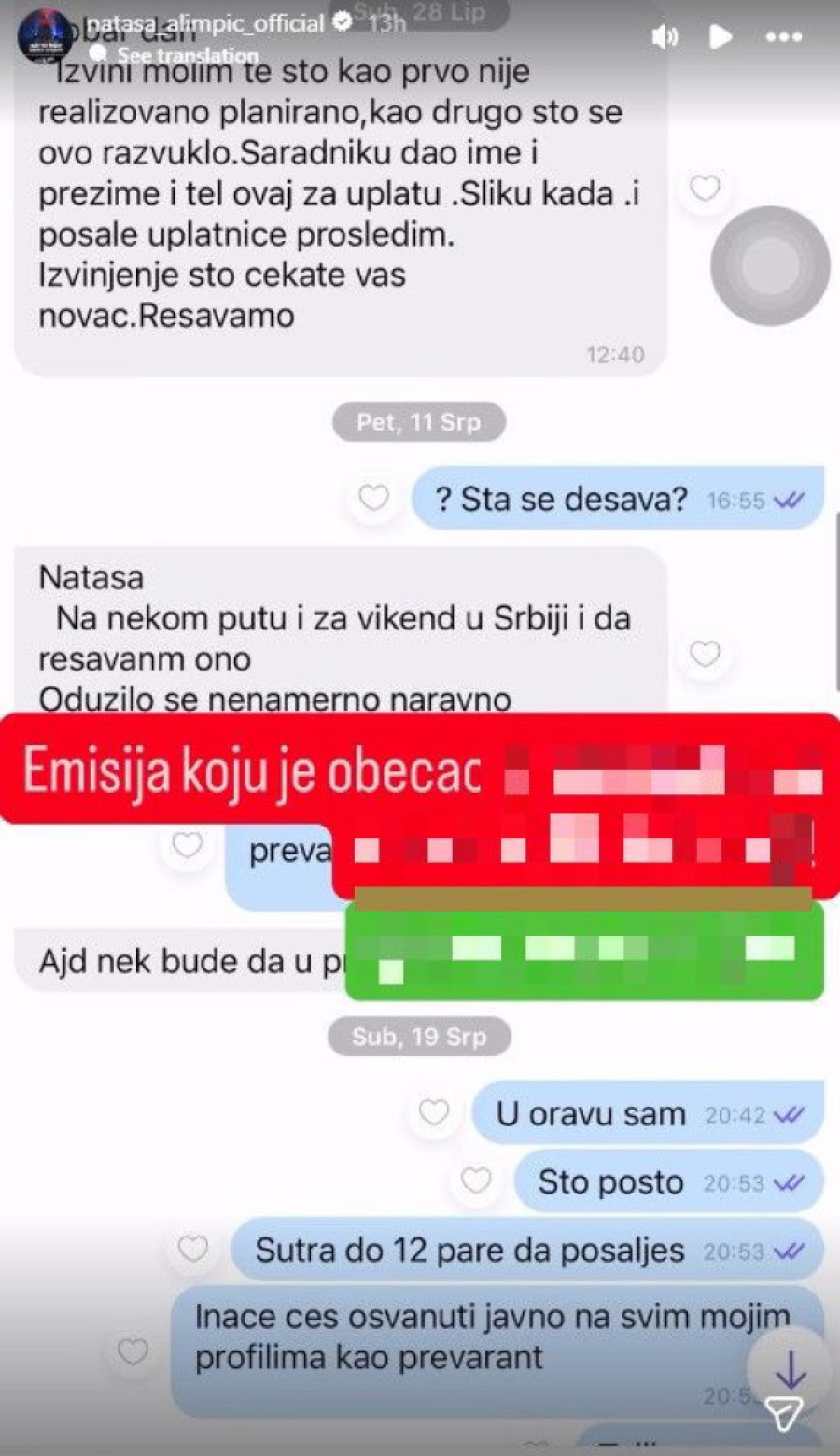 Nataša Alimpić, tako, na društvenim mrežama gotovo da nema koga nije zatekla pošto je pokazala kako ju je nekadašnji suprug Ivane Jovanović, koja se proslavila kao Ivana Elektra, na primer, obmanuo za 300 evra, zbog čega je rešila da se oglasi onlajn. Sudeći po porukama i kolega koje su na to odreagovale, Dejan je drugoj devojci, navodno, uzeo i čak 35.000 evra, "pa onda nestao".