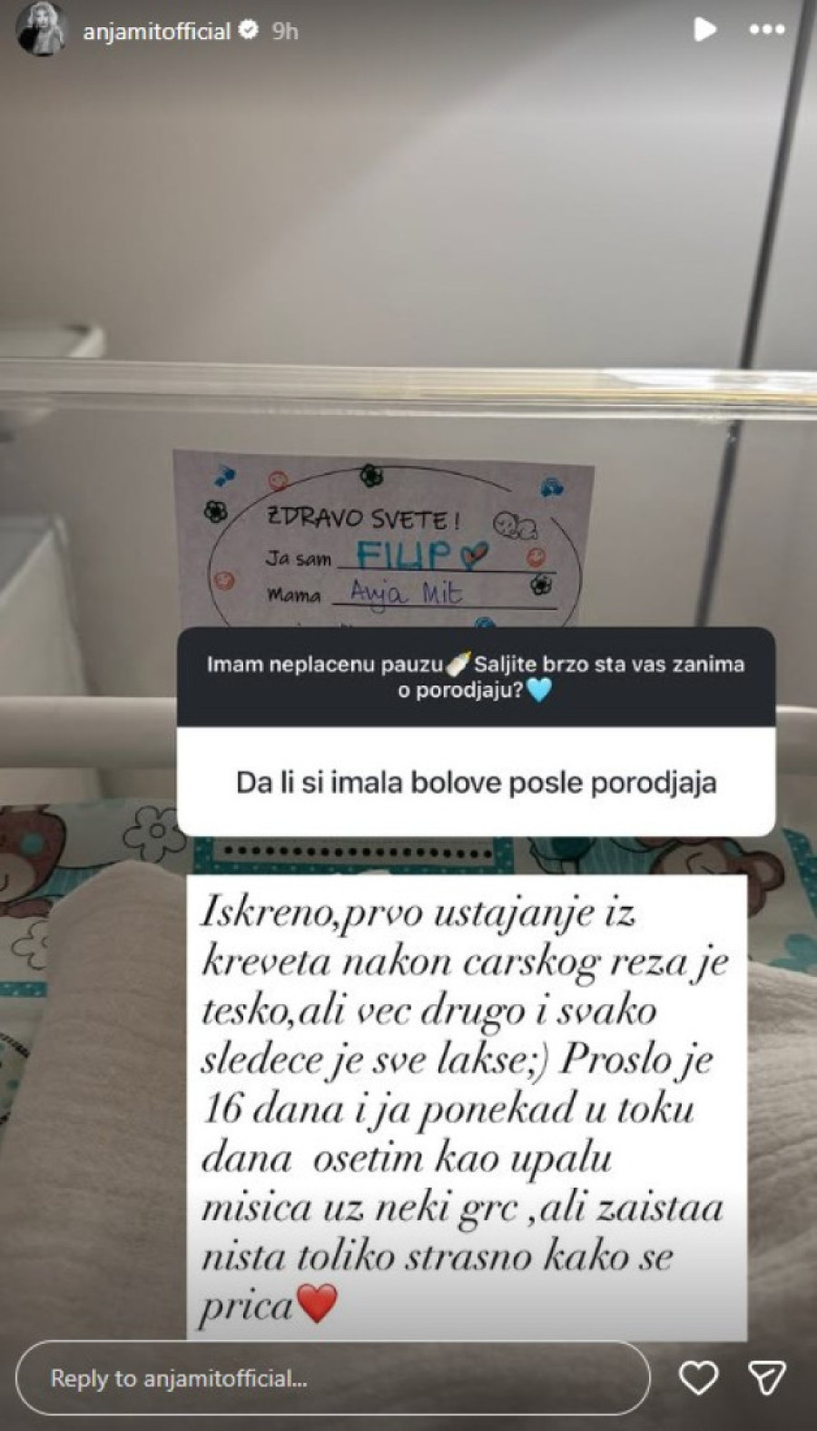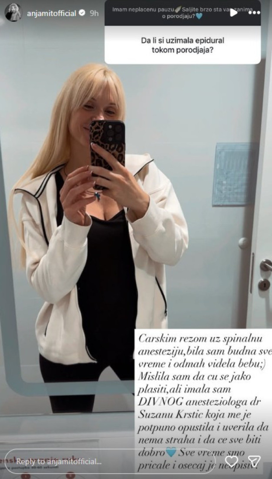 Odgovarajući na pitanja fanova vezana za porođaj, međutim, na svom Instagramu je objasnila kad je u nekim trenucima "bilo povuci-potegni". Ali ni to, ipak, nije joj odnelo osmeh sa lica.