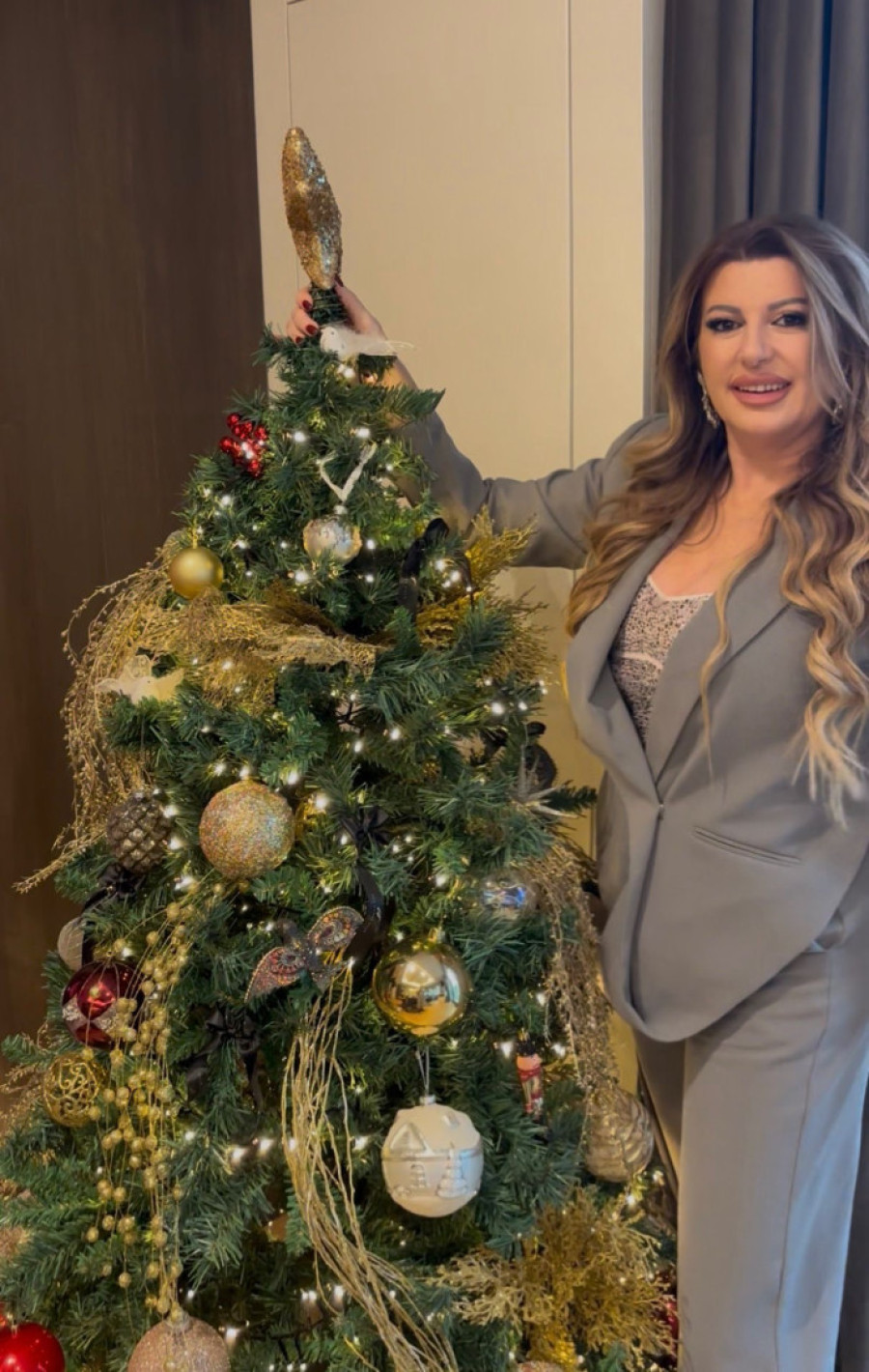 Pevačica je iskoristila početak decembra da se pripremi za praznike koji nam se bliže, a ove godine okitila je čak dve jekle. Prvo novogodišnje drvo ukrasila je u stanu u kome živi, a oko dekoracije su joj pomagali suprug Dragan Tašković Taške i sin Andrej.