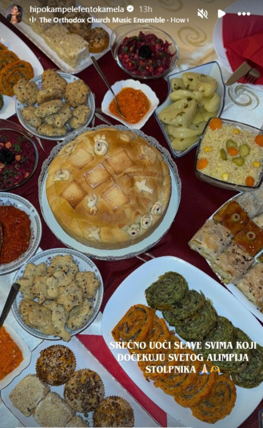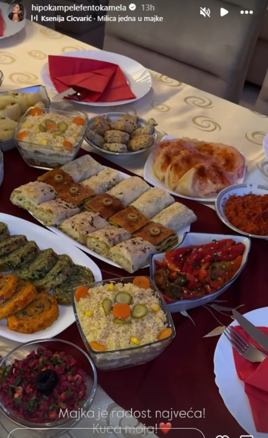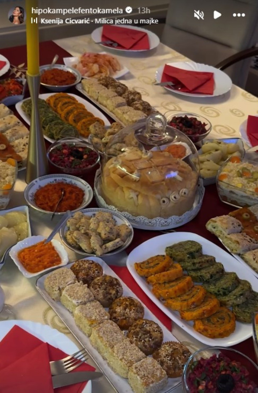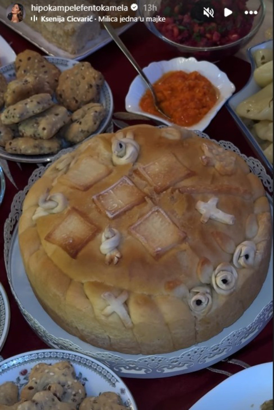 Njihova majka Milica napravila je bogatu trpezu, a glumica je posebno u snimku pokazala slavski kolač. Dragana je objavila video postavljenog stola sa brojnim posluženjem koje su pripremili uoči krsne slave, bogato i posno.
