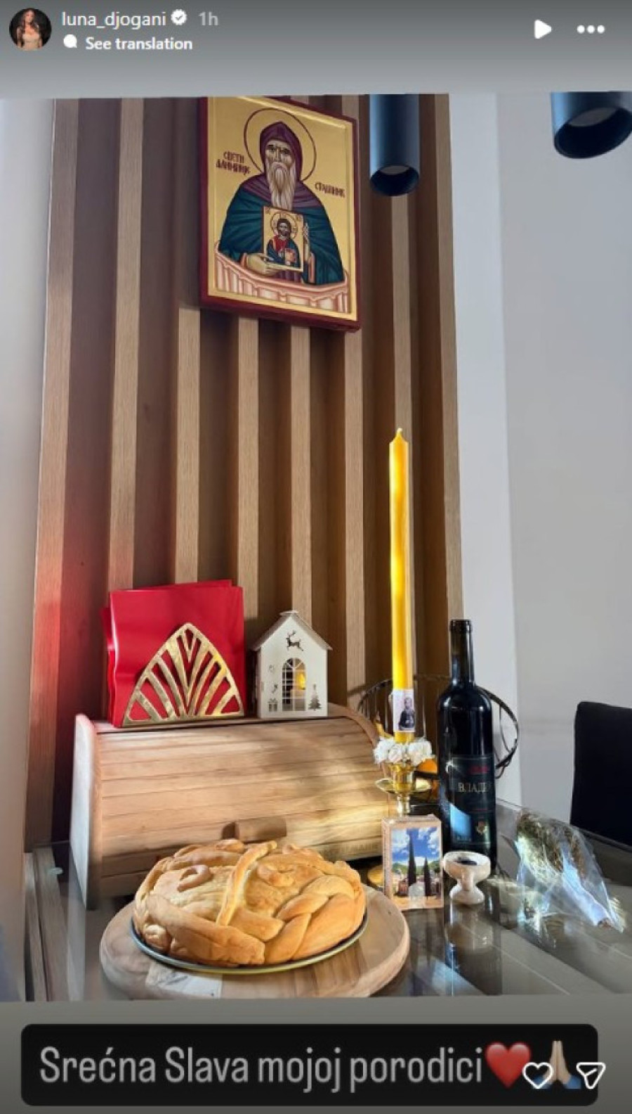 - Srećna slava mojoj porodici - istakla je najpre ona i putem društvene mreže Instagram.