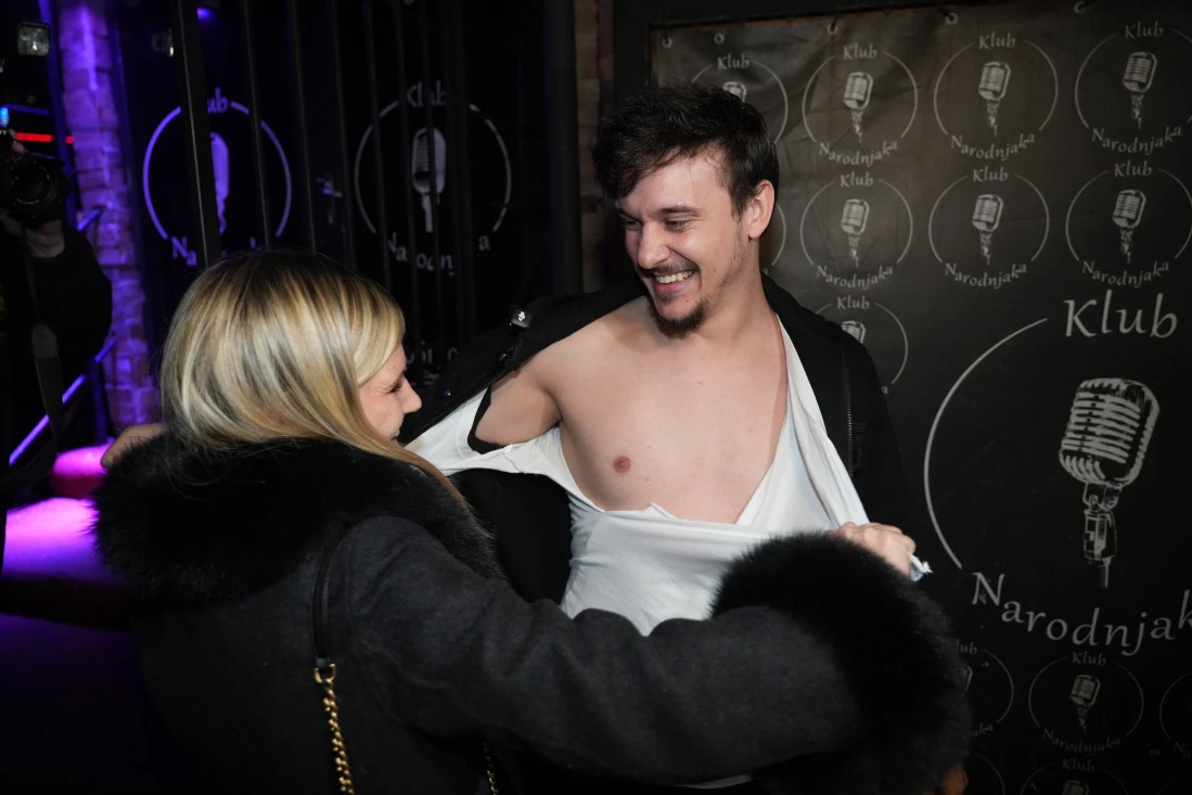 Stevan je tako iscepan pozirao pripadnicima sedme sile, dok je među prvima na veselje došla Aleksandrina rođena sestra, koja je nastavila da mu cepa majicu pred svima.