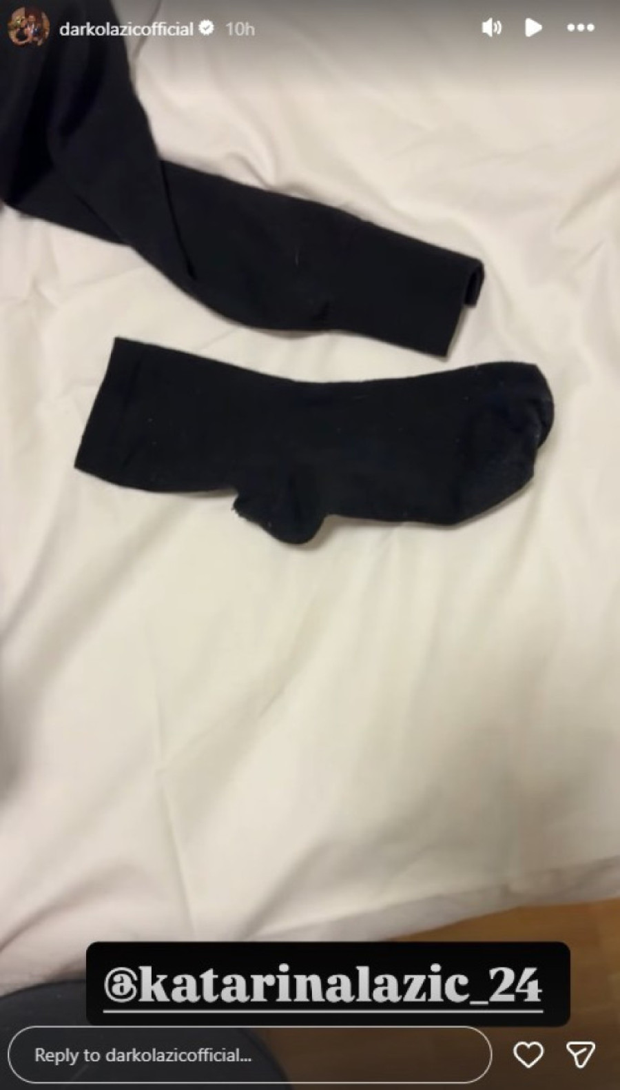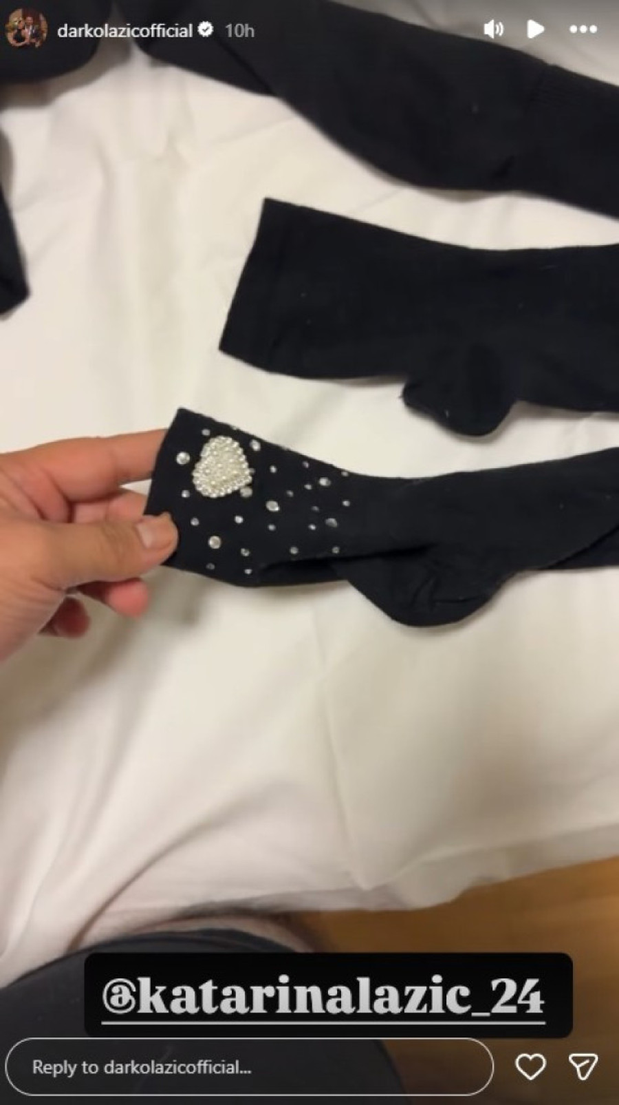 - Ali, pogledajte kakve čarape mi je spakovala. Hvala ti, ljubavi, puno, nisi morala, znam da me voliš - poručio je Lazić, pa zasigurno mnoge nasmejao.