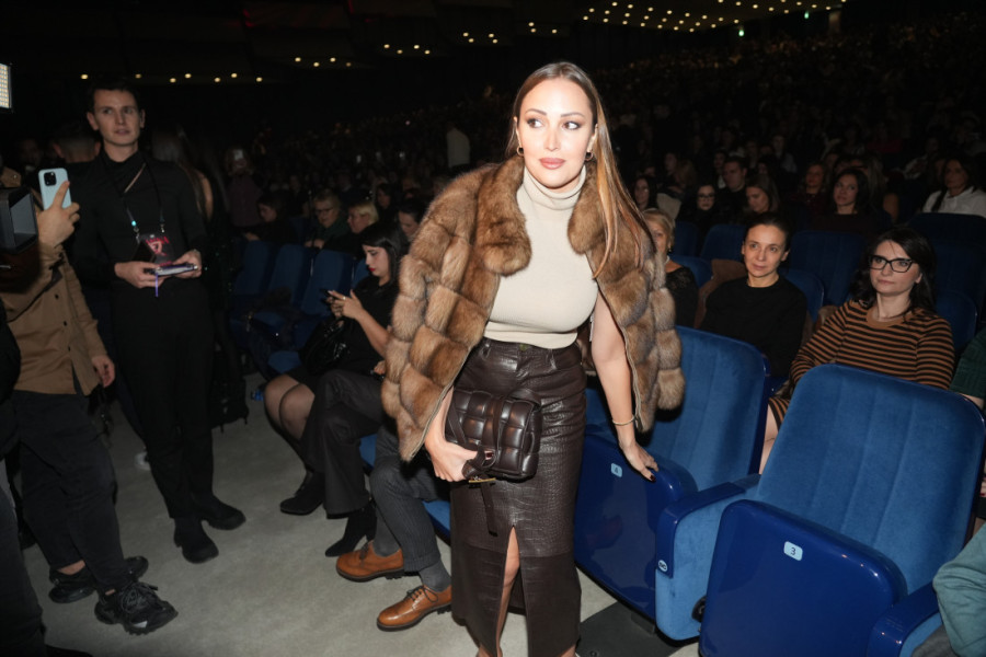 Pevačica je za ovu priliku obukla braon kožnu suknju, braon rolku i skupocenu bundu koju je samo ogrnula. Bila je vidno raspoložena, a na samom početku je spomenula koncert Saše Kovačevića na kom je bila nedavno.
