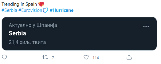 A jedan od korisnika tvrdi da je naša pesma u “trendingu” u Španiji.