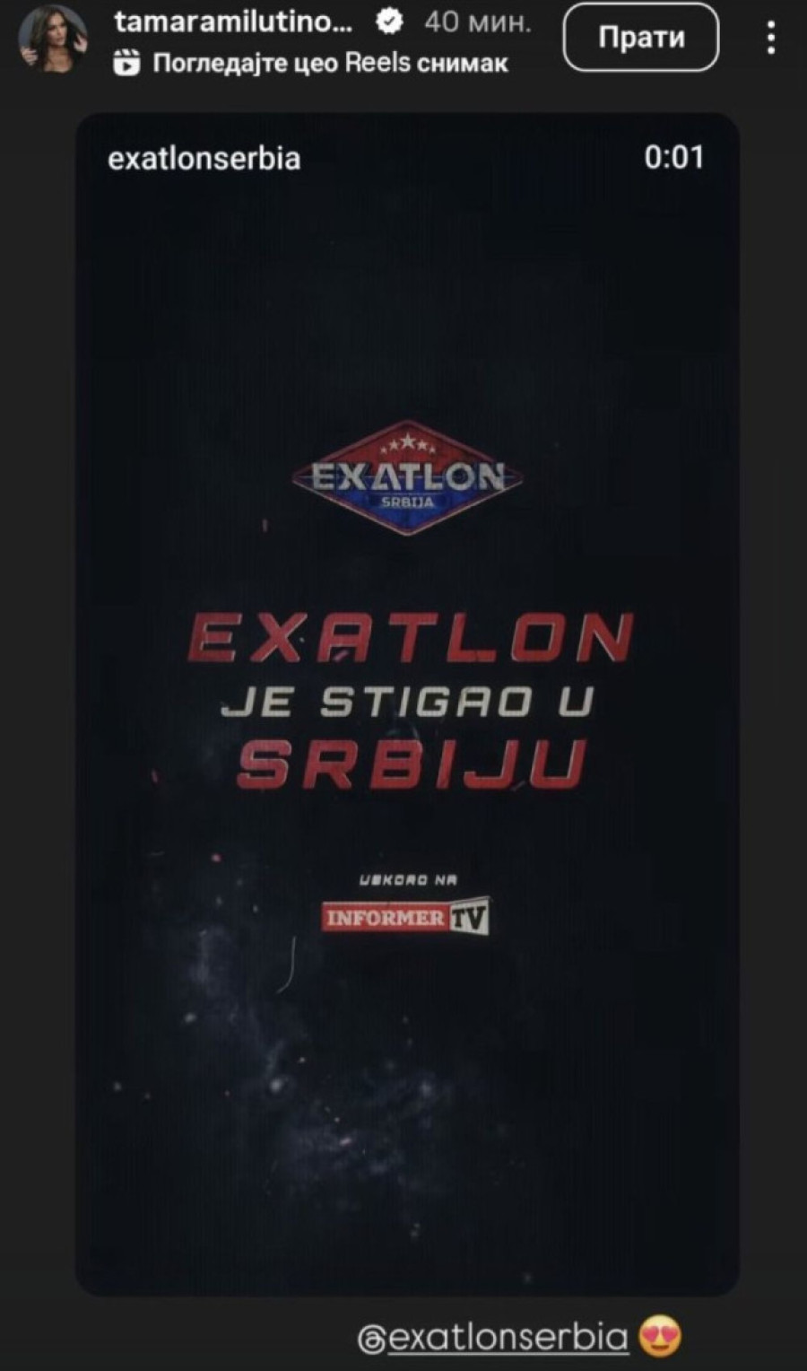 - Jedva čekam januar, da gledam "Exatlon" na "Informer TV" - istakla je Afrika, a puno podrške povodom dolaska ovog šoua u Srbiju, piše dalje "Informer", pružili su putem društvenih mreža i Ivan Mileusnić, Deni Bonaštaj, Nadežda Biljić, Toma Panić, Iva Štrljić, Natalija Trik FX, Tamara Milutinović, Ivana Pavković, Ljuba Pantović, Nući i mnogi drugi.