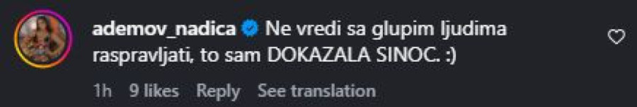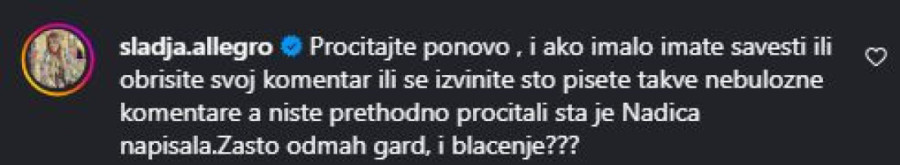 - Pročitajte ponovo i ako imate imalo svesti ili obrišite komentar ili se izvinite što pišete takve nebulozne komentare, a niste prethodno pročitali šta je Nadica napisala. Zašto odmah gard i blaćenje? - upitala je ona, nakon čega pojedinci od svog ipak nisu odustajali.