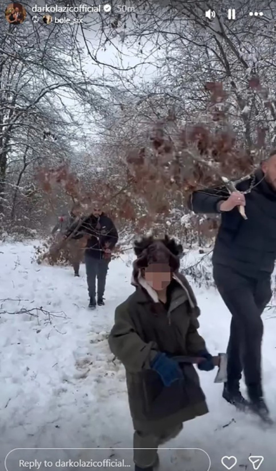 Na kraju su Darka Lazića snimali kako sekirom seče badnjak, pa je snimak iz šume i nasmejao sve, jer folker nije imao snage više dok su ga bodrili: