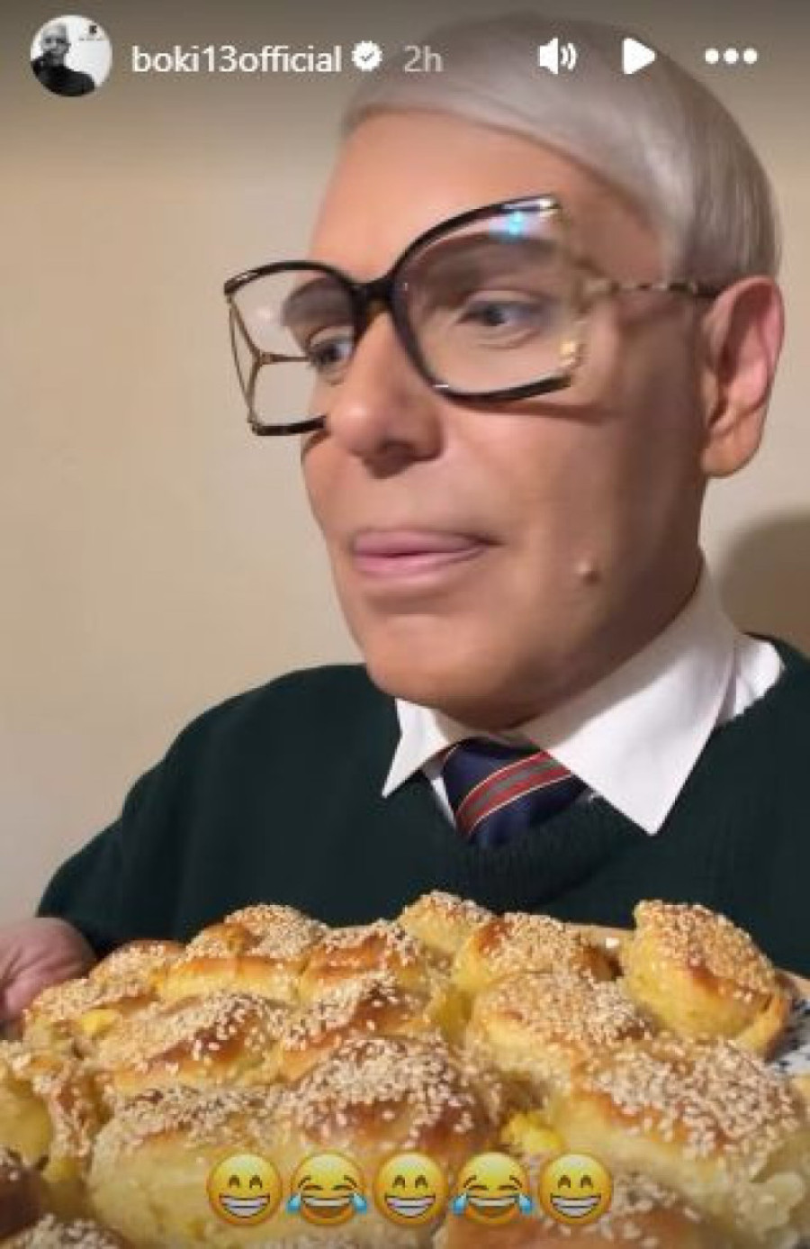 - ...Gospođa je odlučila da napravi pogaču, kao što svake godine radi, tradicionalno. Kvasac je bio pokvaren i pogača se stvrdnula. Pomoć prijatelja je bila tu; sva sreća da je jedna naša prijateljica kupila dva hleba. Pogača jako lepo izgleda, ali nije za jelo - pričao je Boki na svom Instagramu.