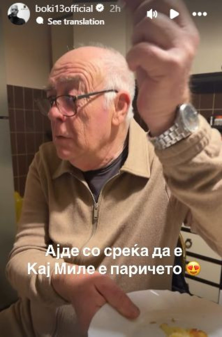 Bojan Jovanovski - Boki 13 ovoga puta našao se u fokusu pošto se oglasio onlajn iz porodičnog doma, gde praznuje sa svojim roditeljima Jasminkom i Miletom. Majka, prema njegovim rečima sa snimka, napravila im je bila i pogaču.