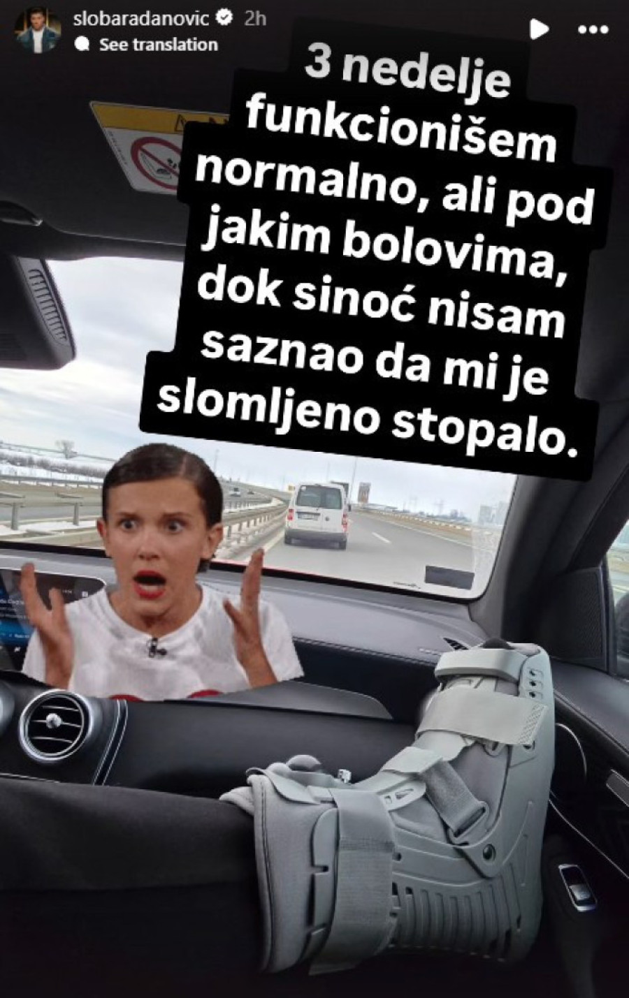 Sloba, podsetimo, uz fotografiju za koju je ispozirao s ortopedskom čizmom, otkrio je da prilično dugo nije znao da je došlo do preloma.