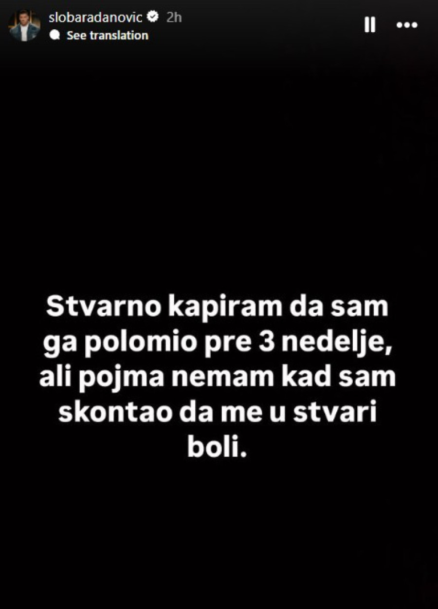 - Ne sećam se ni kad, ni kako sam ga slomio. Kapiram da sam ga polomio pre tri nedelje, ali pojma nemam kad sam skontao da me u stvari boli - iskren je bio na Instagramu pevač.