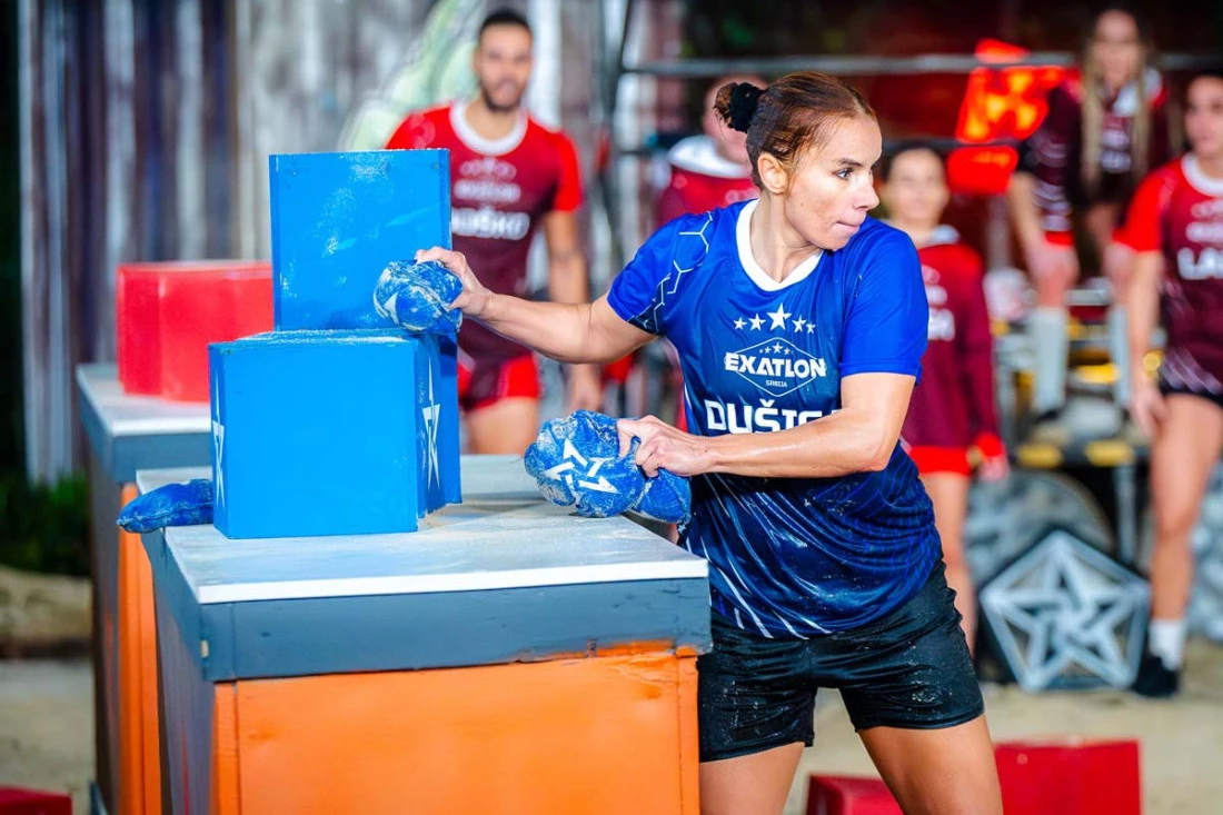 Pred sam početak "Exatlona" takmičarima je saopšteno u kojem su timu, Crvenom ili Plavom. To je učinila reporterka televizije "Informer", Kristina Vasić, a u okviru "Druge strana Exatlona". Kada je došao red na Dušicu Topić, međutim, bes je preovladao kod takmičarke.