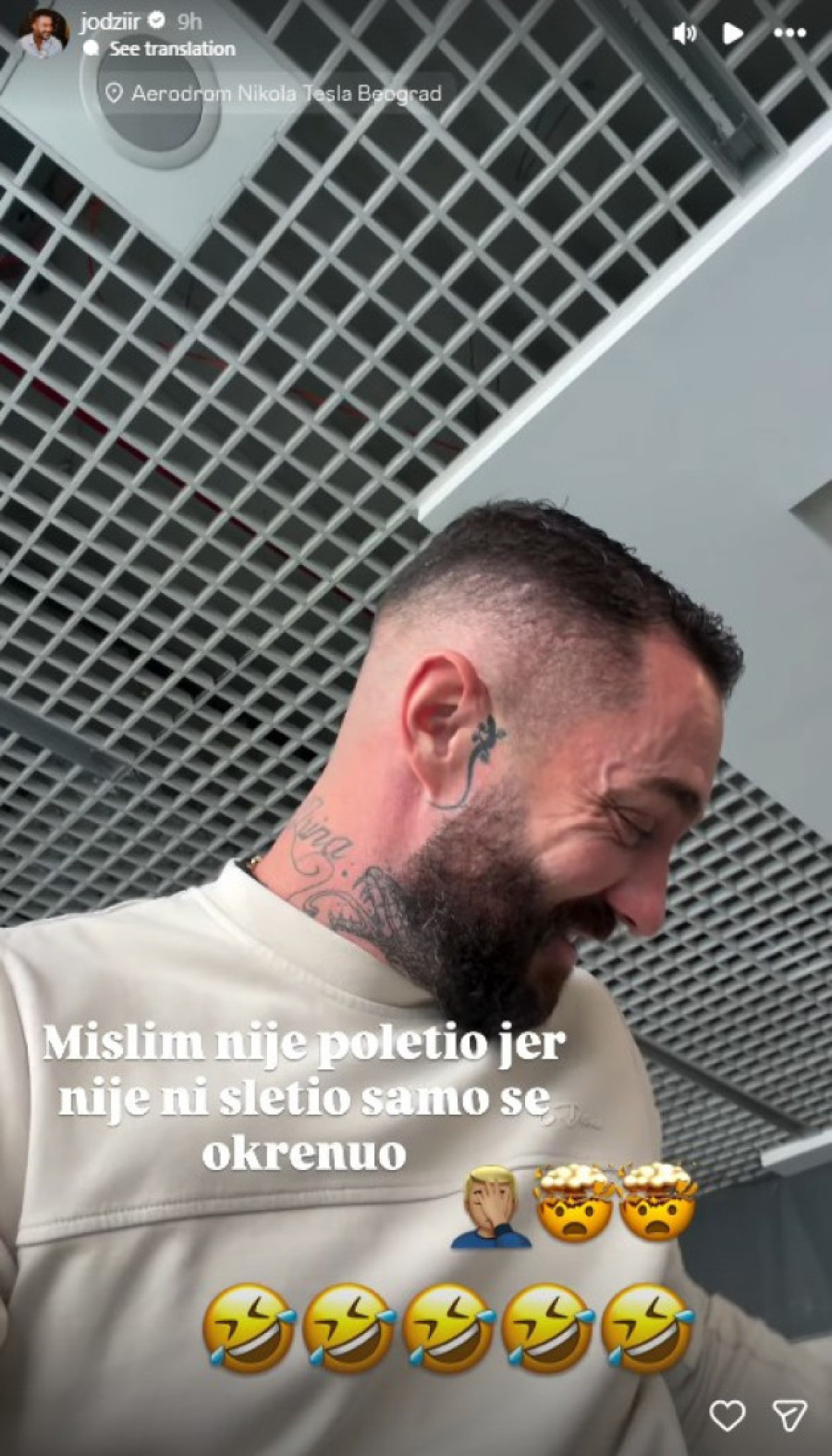 - Zato je opet odleteo za Podgoricu, pa će da se vrati po nas, možda... Za sad po svoj prilici neće da se vrati po nas. Hoću da idem kući, ljudi, leteo sam 12 sati iz Punta Kane do Minhena, tamo sedeo sedam sati na aerodromu, onda leteo za Beograd... Nikad kući neću doći - pričao je u okviru svojih "storija".