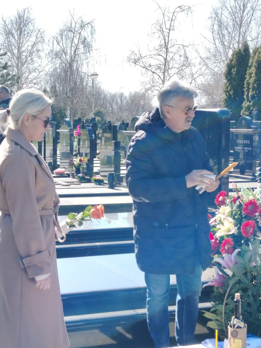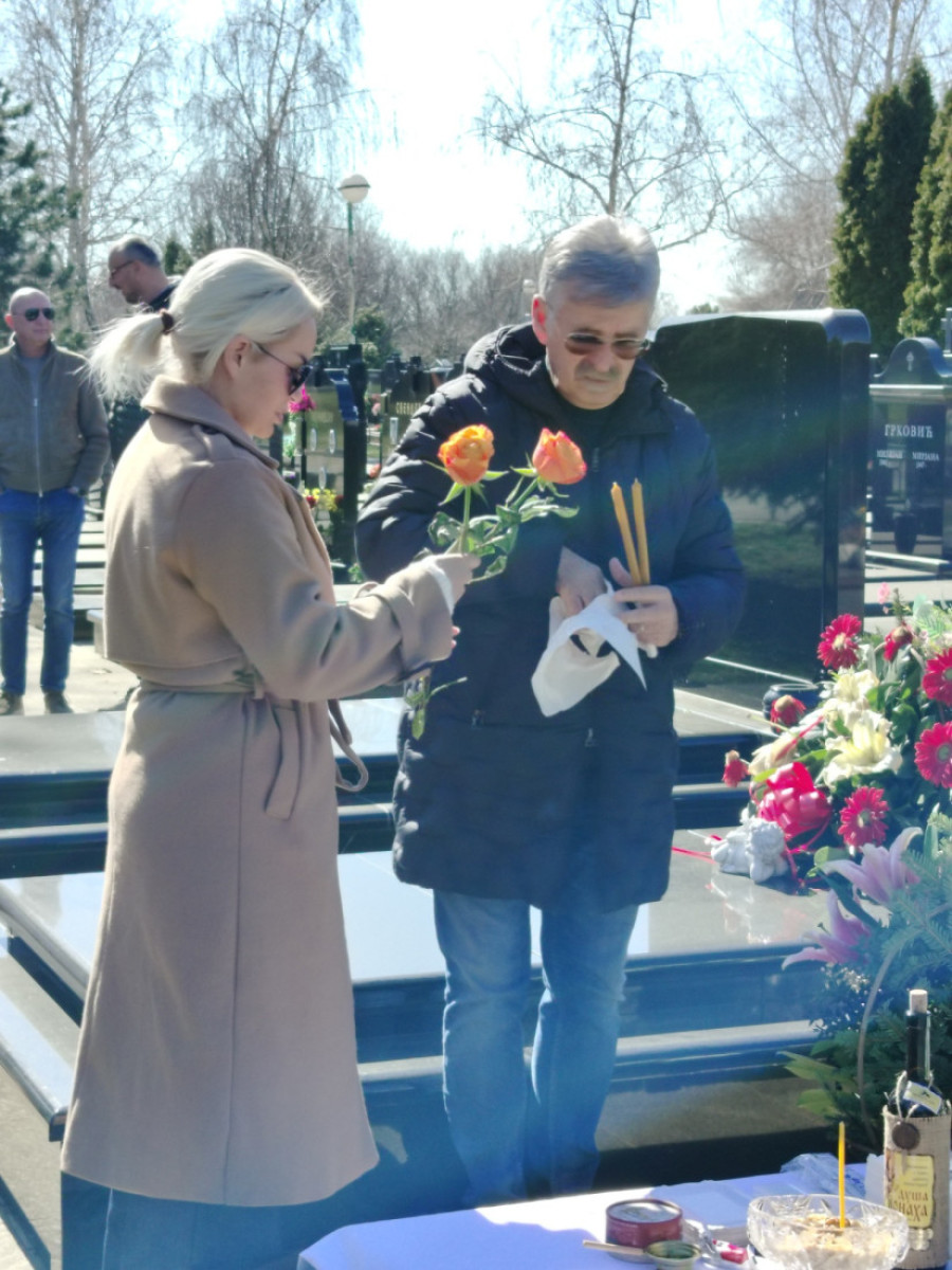 Uoči pomena na Novom bežanijskom groblju zabeležena je potresna scena - belo cveće u obliku srca položeno je pored groba, uz žito koje će biti služeno u njegovu čast.