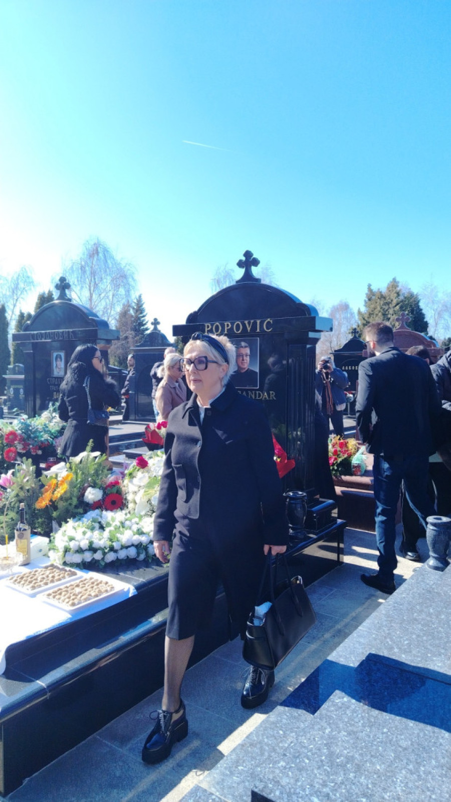 Nešto pre 12 časova na groblje su stigli članovi Popovićeve porodice - supruga Suzana, ćerka Aleksandra, pastorak Danijel i njegova trudna supruga Tijana, koja svakog časa treba da se porodi, kao i Popovićeva rođena sesta..