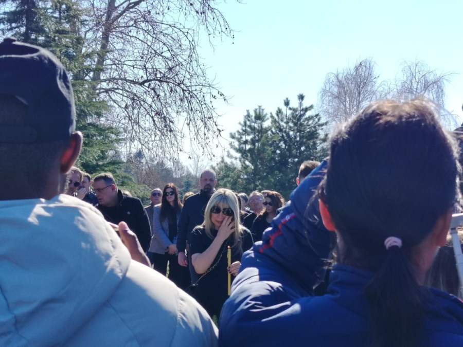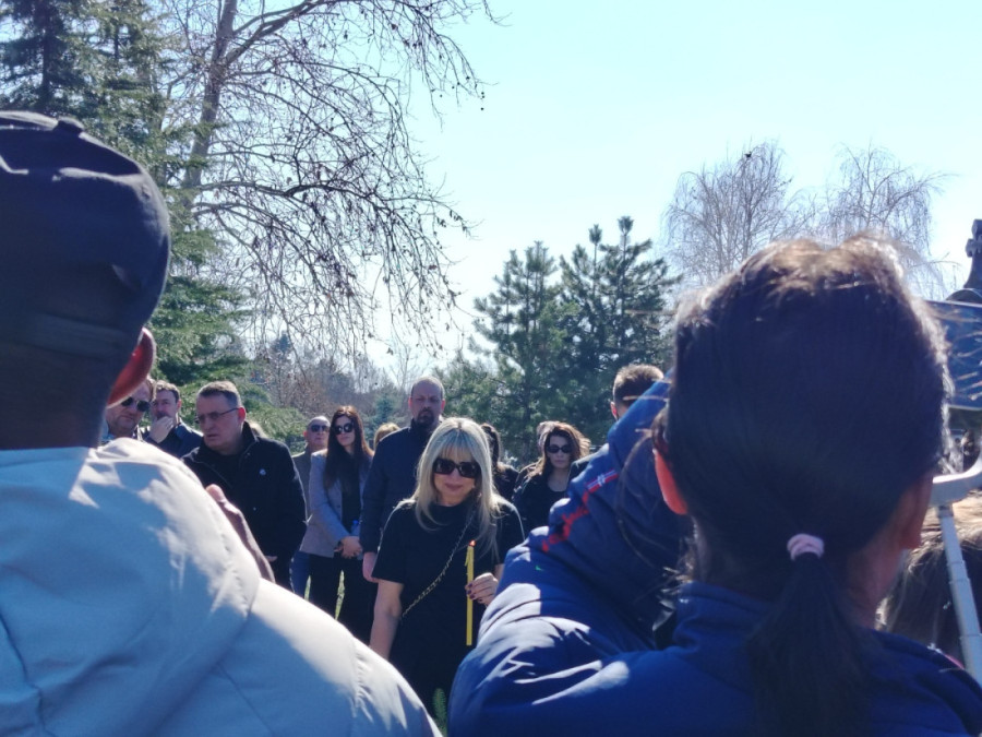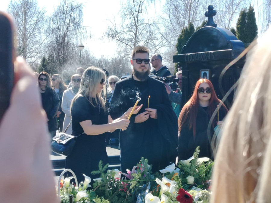 Dok je trajalo opelo, pevačica nije mogla da se smiri, a najveću podršku su joj pružali ćerka Aleksandra, sin Danijel i snaja Tijana.