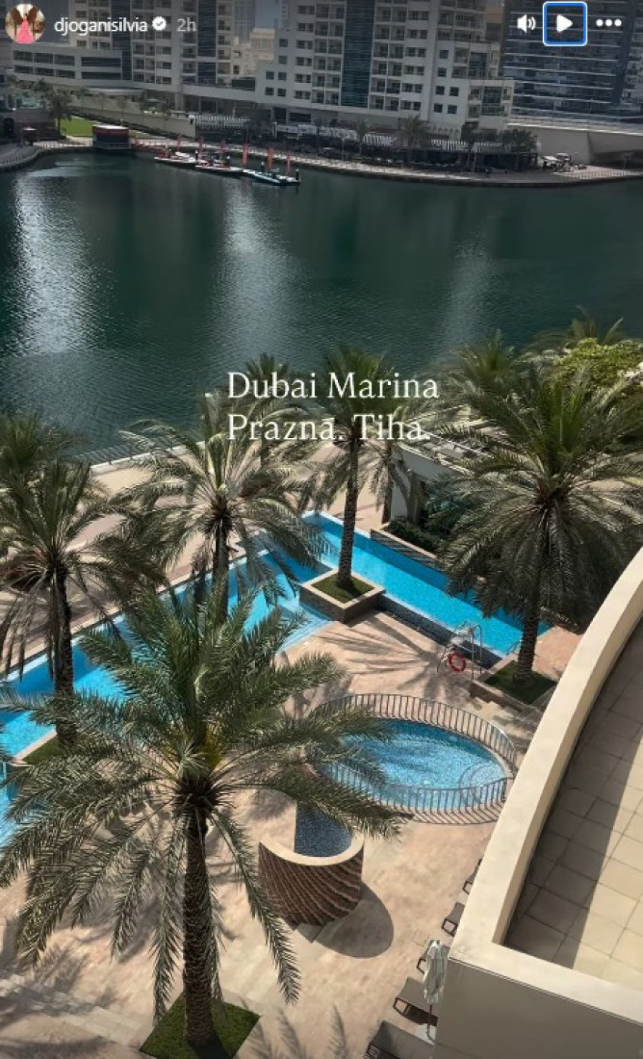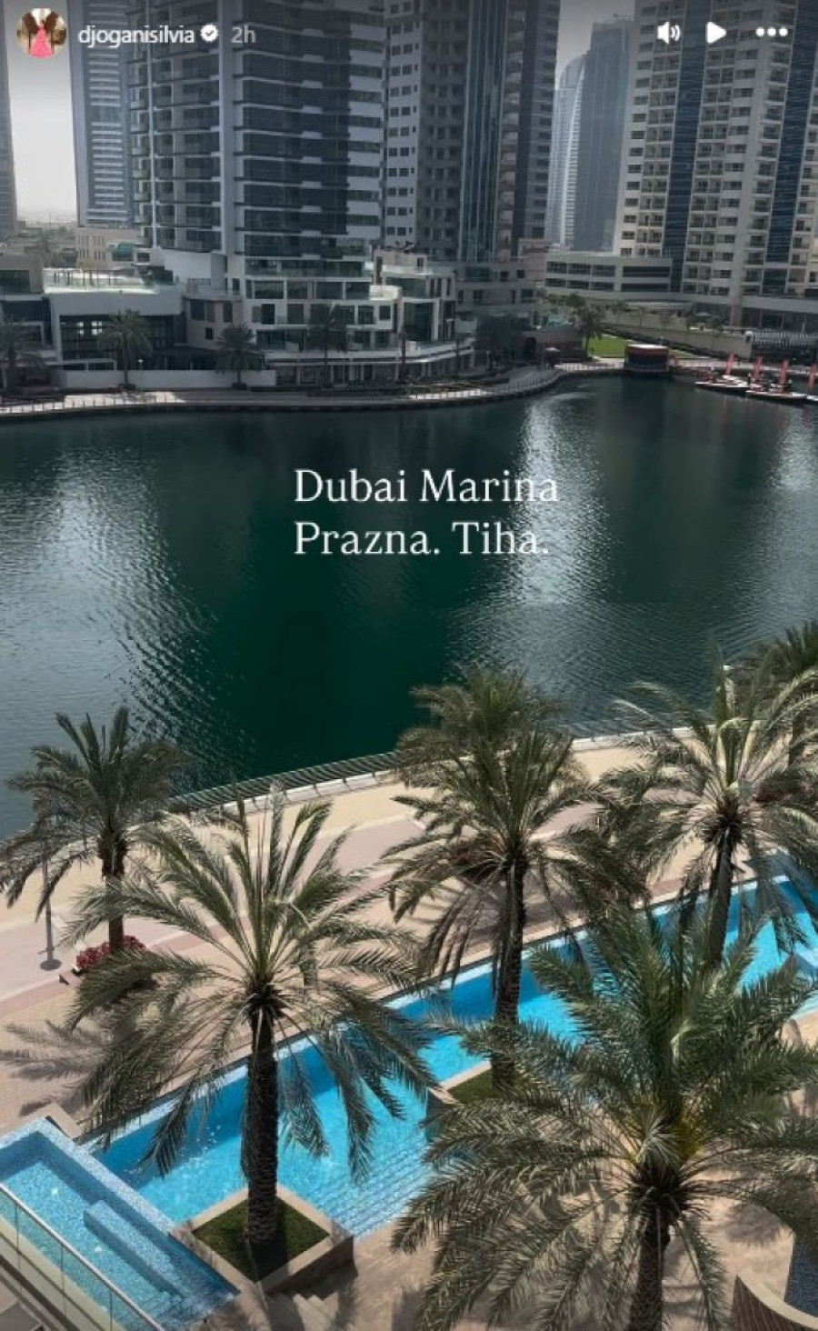 - Dubai Marina. Prazna. Tiha - poručila je ona na svom Instagramu uz kratak snimak.