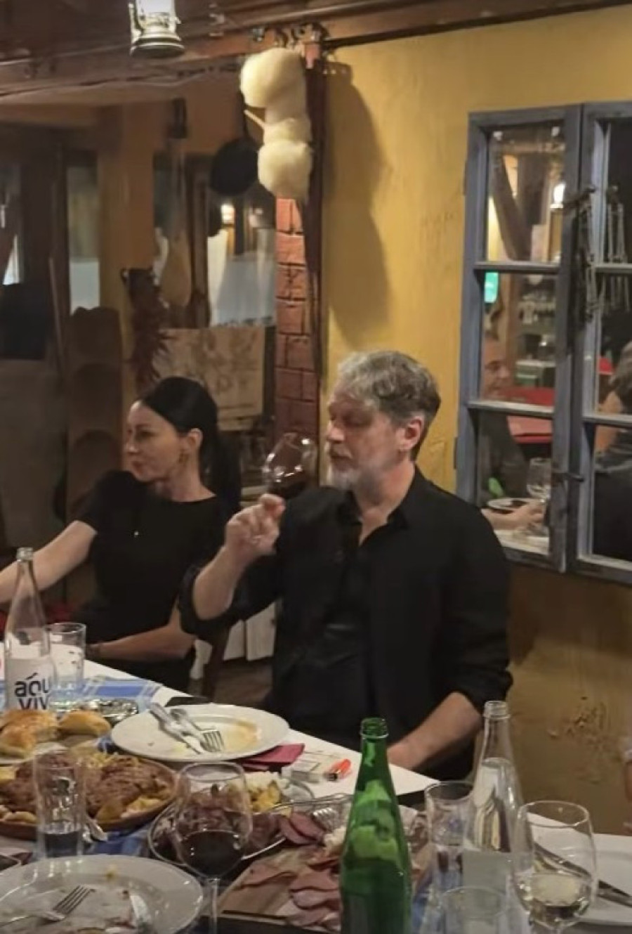 Za stolom je bila i njena sestra Sloboda Mićalović. Sedela je pored glumca Dragana Mićanovića, a na snimcima nije "uhvaćen" i Slobodin suprug Vojin Ćetković.