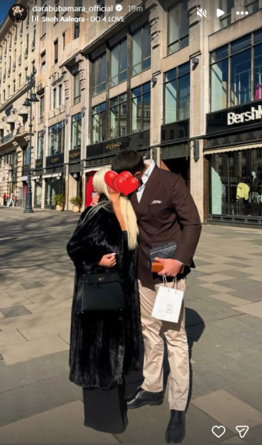 Blistala je u crnoj bundi, a strasni poljubac svi već sada komentarišu na društvenim mrežama. Kako se može videti na njenim Instagram storijima, oni uživaju u Budimpešti u sunčanom danu, a obilaze i restorane.