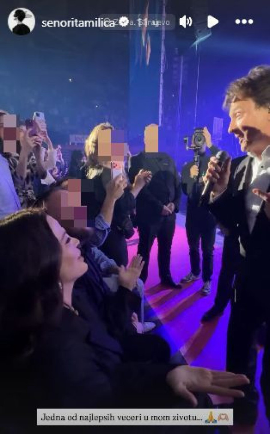 Pevač Zdravko Čolić Čola održao je noćas koncert u Sarajevu, na kom je bila i Milica Pavlović. Dok je on nizao hitove, ona se s ostatkom fanova ludo zabavljala i to u prvom redu ondašnje poznate dvorane.