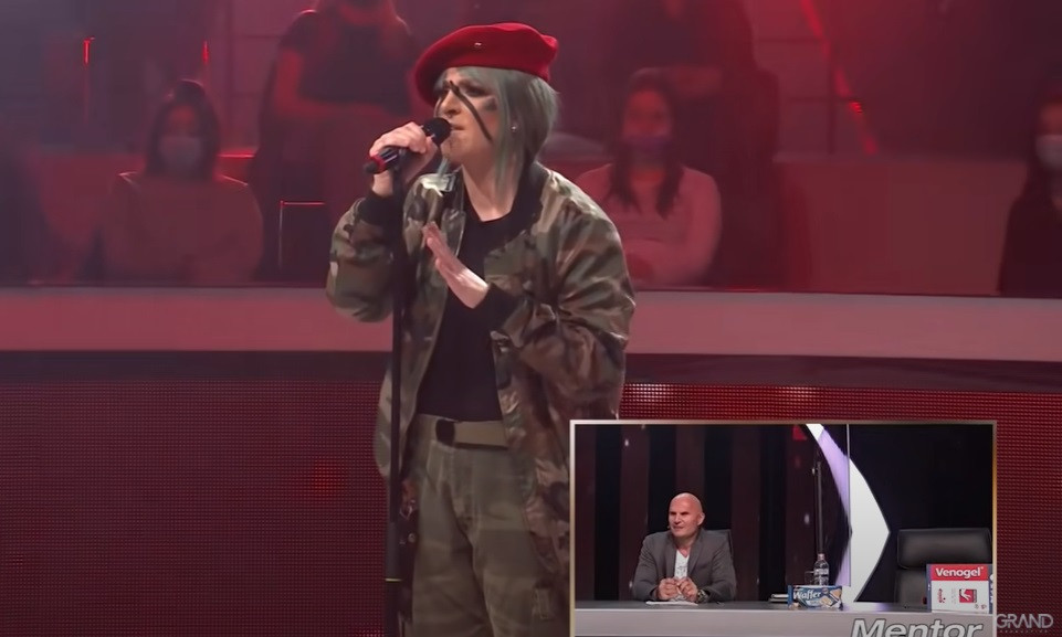 Nekoliko krugova ranije, ova takmičarka na scenu je kročila sa velikim plišanim medom, dok je na licu imala scensku šminku poput pozorišne maske, a u skladu sa kojom se u toj emisiji maskirao i njen mentor.