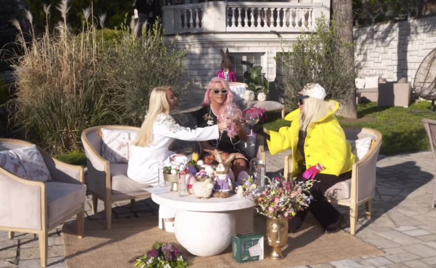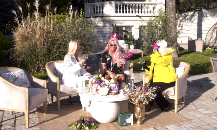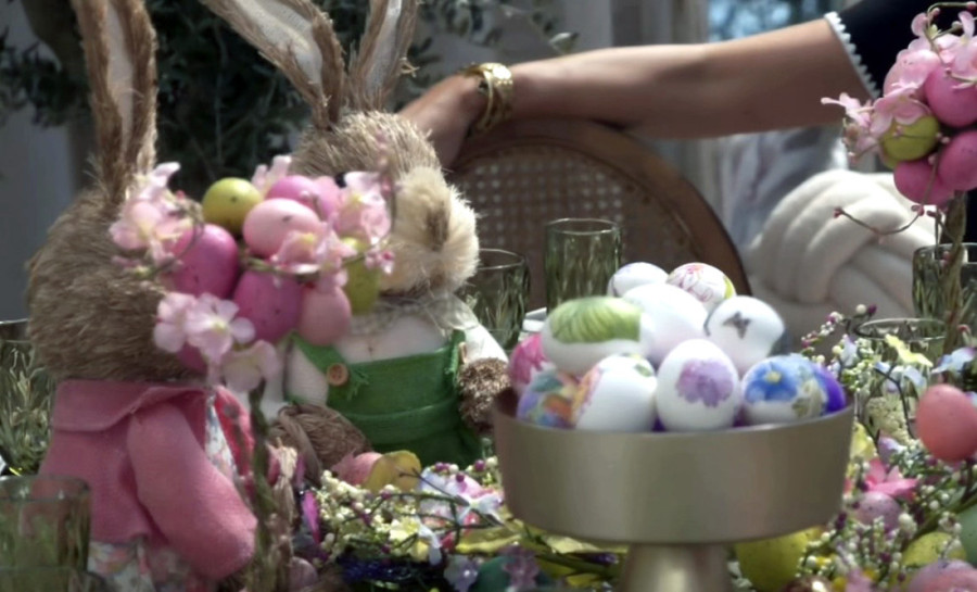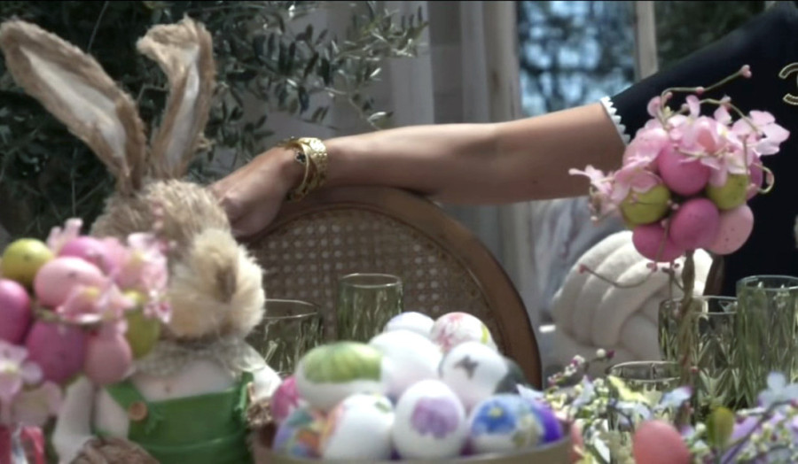 Njena oaza dekorisana je brojnim uskršnjim motivima, a pevačice su nazdravile šampanjcem. Na stolu se vidi zlatna činija sa ofarbanim jajima, dok su okolo postavljene dekorativne zeke sa velikim cvetnim aranžmanom.