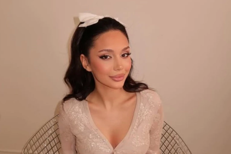 Za svoj poseban dan, Nina, koja je u februaru operisala nos odabrala je elegantan stil, te je pozirala u svetlucavoj haljini boje peska sa čipkastim detaljima, dok je pažnju posebno privukla duga, talasasta kosa ukrašena velikom belom mašnom.