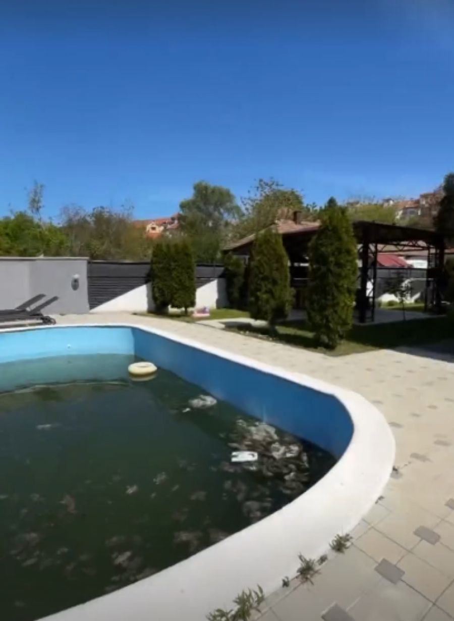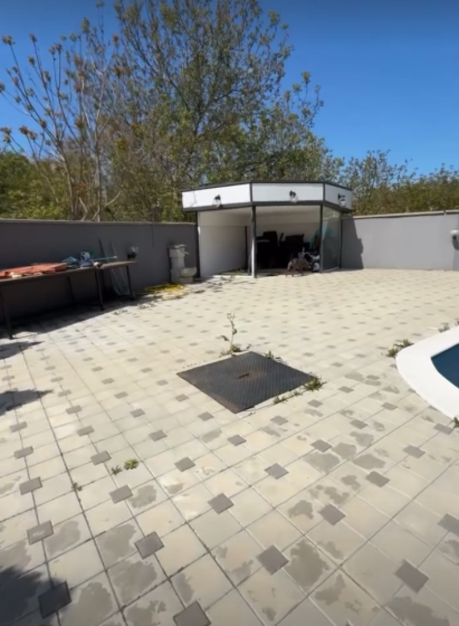 Vila opasana ogradom ima veliko uređeno dvorište u kom se nalazi i bazen, višespratna je i veoma prostrana. Kako još nije počela letnja sezona, bazen u kome reper provodi puno vremena tokom letnjih dana, trenutno je neočišćen.