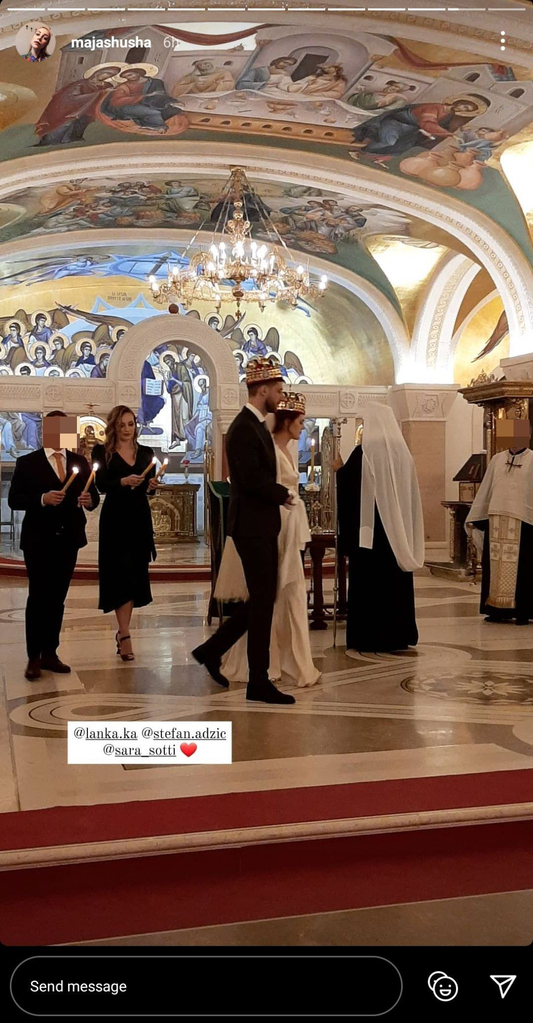 Kumovala joj je pevačica Sara Soti, koja se na ceremoniji venčanja pojavila u crnoj haljini.