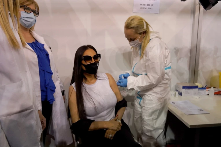 Pevačica je primila kinesko cepivo kompanije Sinofarm, nakon čega je nasmejana pozirala medijskim ekipama