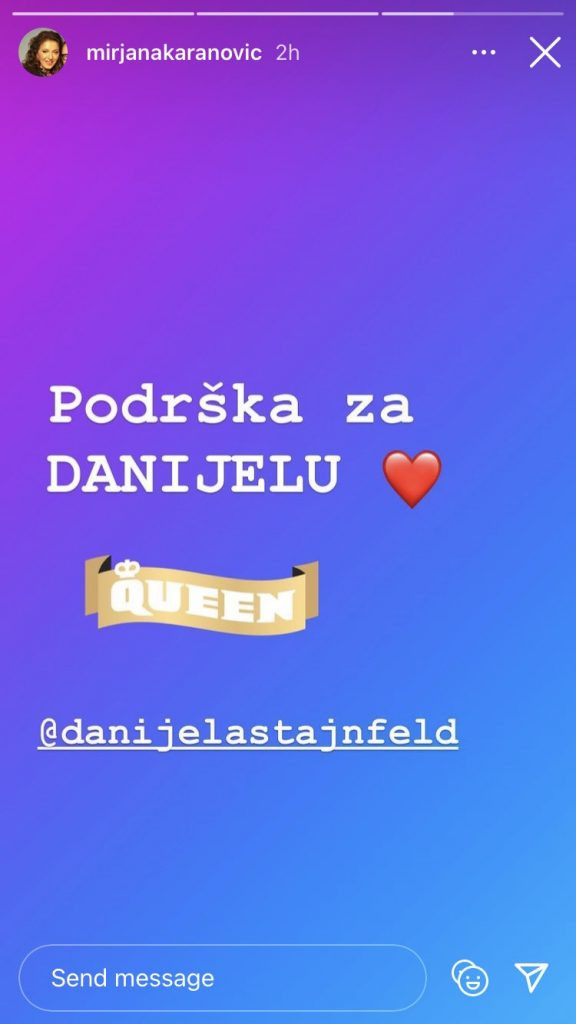 Sinoć su se na Instagramu kratkom porukom podrške Štajnfeldovoj oglasili i Petar Benčina, Tamara Dragičević, Mirjana Karanović, Jelisaveta Orašanin, Marina Ćosić, Nina Janković…
