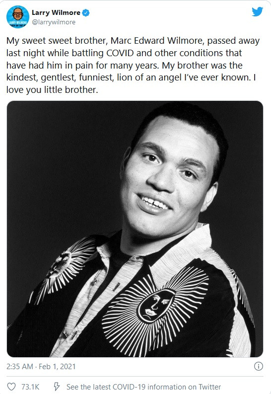 – Moj dragi, dragi brat, Mark Edvard Vilmor, preminuo je prošle noći nakon borbe sa koronavirusom i drugim zdravstvenim problemima koji su ga mučili mnogo godina. Moj brat je bio najljubazniji, najnežniji, najduhovitiji lav i anđeo kog sam ikada poznavao. Volim te, mali bato – oprostio se Leri tužnim rečima.