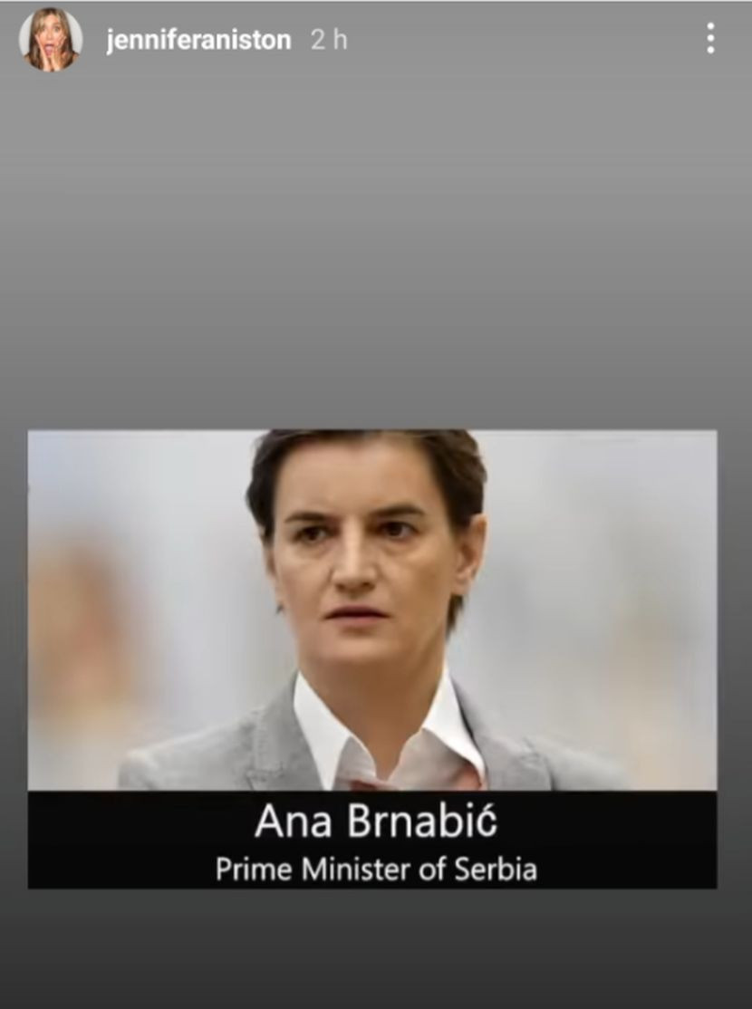 Dženifer Aniston objavila fotografiju Ane Brnabić, Printscreen: Instagram/jennifer aniston