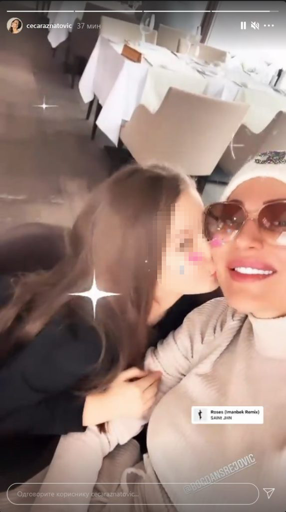 Kroz raznorazne filtere, njih dve su se snimale i slale poljupce, a jedan je mala Iskra uputila Ražnatovićki. Srejović je bio u braku sa Zoranom Tasovac, koja je sad u vezi sa pevačem Sašom Kovačević. On, takođe, objavljuje zanimljive fotografije sa ćerkom svoje izabranice, a sada je i Ceca pokazala da se lepo slaže sa naslednicom svog dečka.