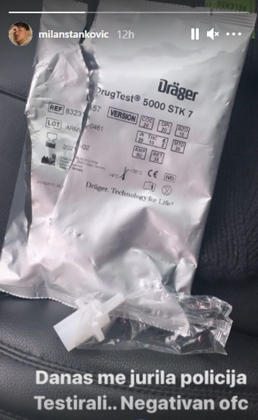 Pevač Milan Stanković šokirao je svoje pratioce objavom na Instagramu. Naime, on je fotografisao test na narkotike i napisao da ga je čak jurila i policija.