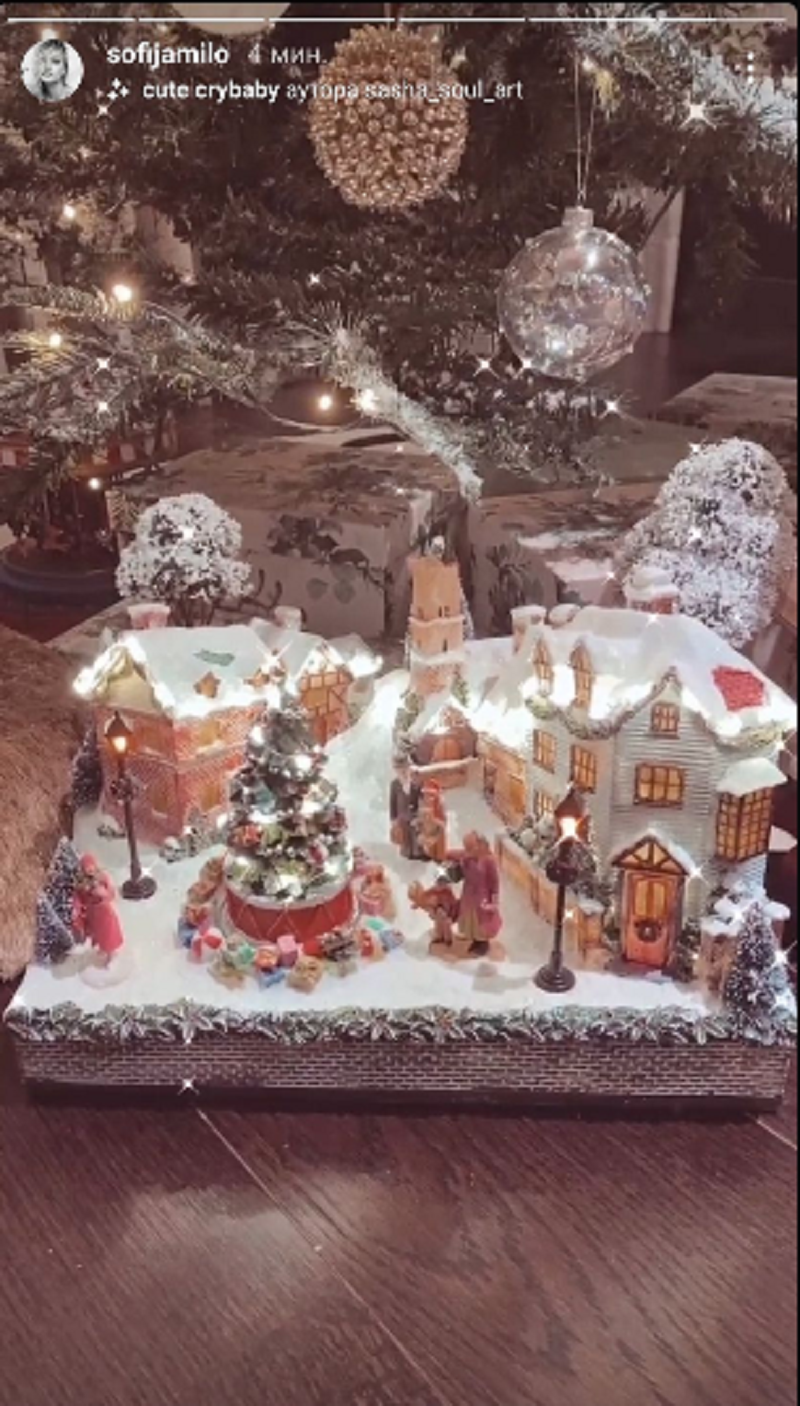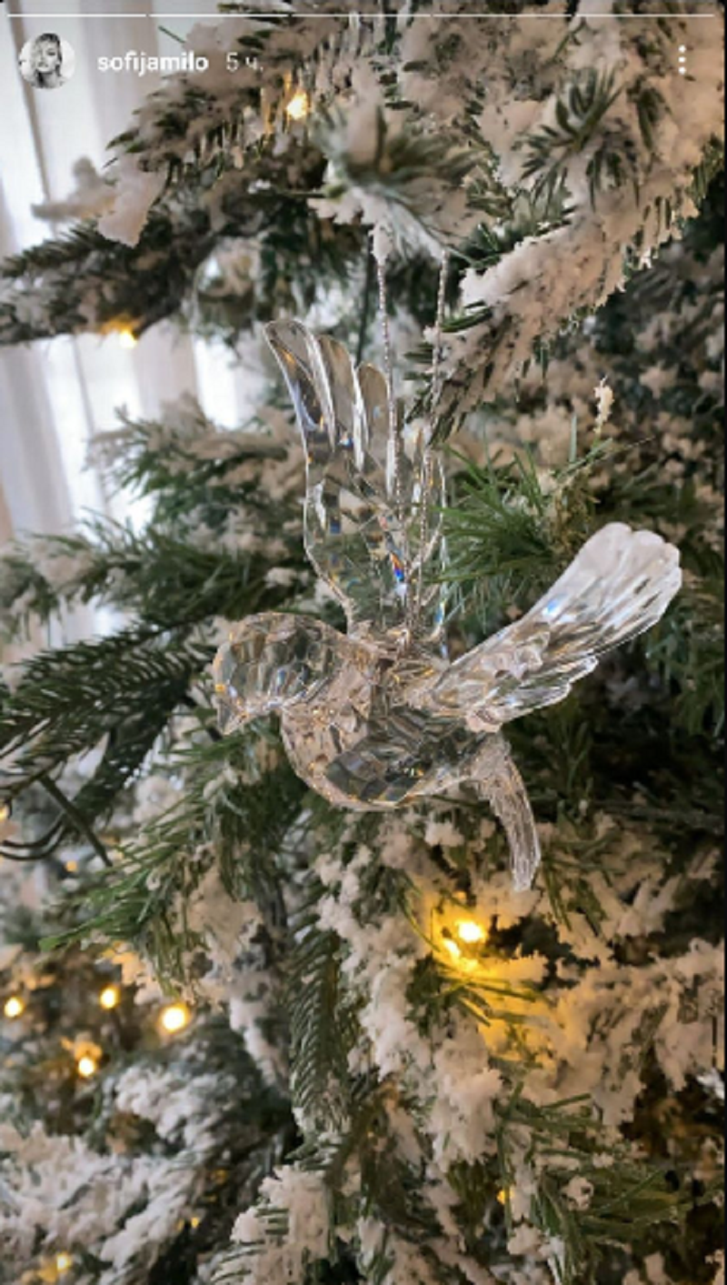 Sofija je na Instagramu u okviru storija objavila fotografije belih i zlatnih ukrasa i pokazala jedan od detalja sa jelke.