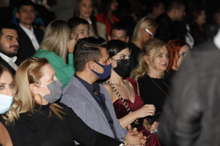 Ona je pred početak premijerne projekcije sa Milošem i njegovim kolegama provodila vreme, dok je na samoj premijeri sedela tik uz Bikovića.