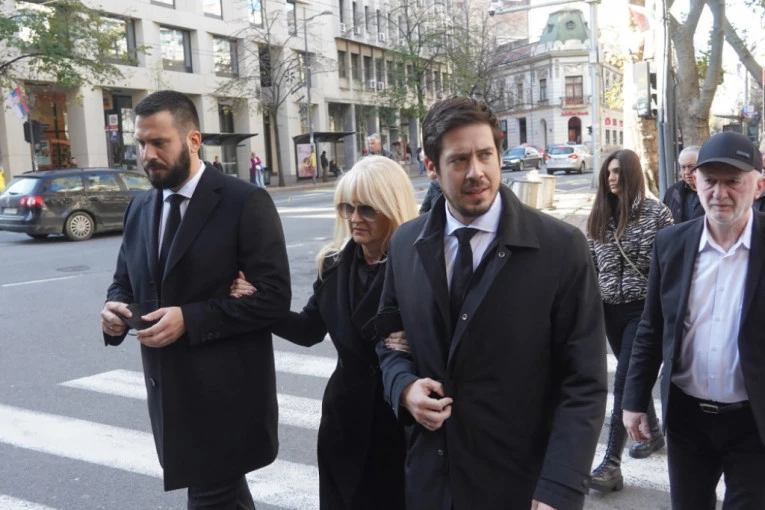 Marinkovi sinovi Nikola i Marko su stigli sa njihovom majkom Slavicom Rokvić, koju su sve vreme držali za ruke.