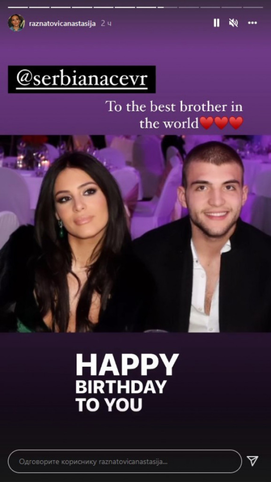 Anastasija Ražnatović nije propustila priliku i da nizom storija na društvenoj mreži Instagram obeleži rođendan brata Veljka. Čestitku je napravila, inače, kako od starijih, tako i novijih, mnogo poznatijih fotografija njih dvoje, kojima mu je udelila i nekoliko lepih reči i komplimenata.