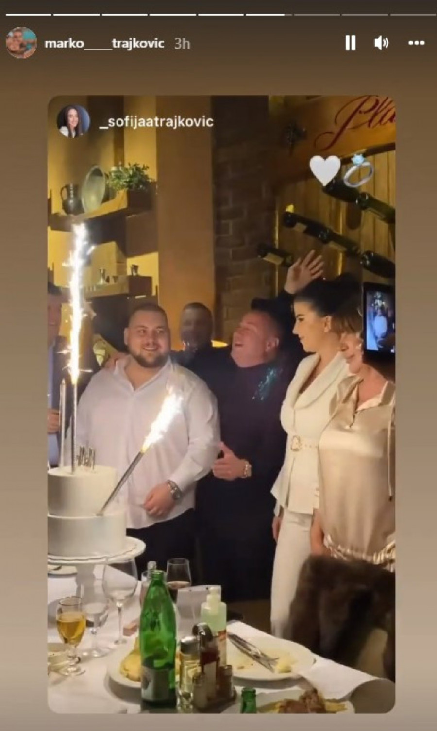Na Instagram storiju mladoženja je podelio nekoliko snimaka na kojima se vidi kako kako se vesele. Marko je sve vreme držao za ruke suprugu Mariju i uživao. Najponosniji tata Đani, ne krije sreću što je oženio naslednika, te je zapevao dobro poznatu pesmu „Danas majko ženiš svoga sina”, dok je na stolu postavljena mladenička torta sa prskalicama.