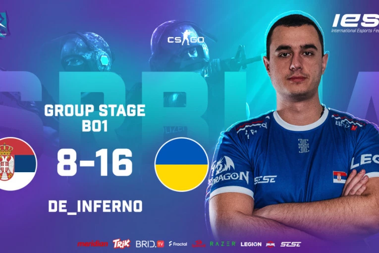 Srpska CS:GO reprezentacija je porazom od Ukrajine ostala bez šanse za plasman u drugu fazu, što automatski znači da smo završili učešće na ovogodišnjem Svetskom IeSF šampionatu.
