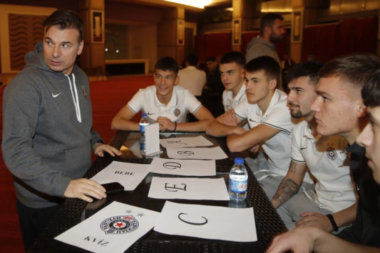Partizanovi fudbaleri na kvizu pokazali koliko znaju istoriju kluba, pitanja sastavljao sin legende crno-belih (FOTO/VIDEO)