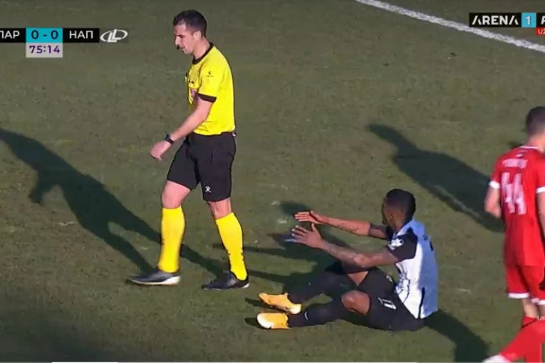 U 77. minutu meča Partizana i Napretka napadač crno-belih, Rikardo, pao je u kaznenom prostoru, ali sudija Živković pokazaoda se igra nastavi pri rezultatu 0:0.
