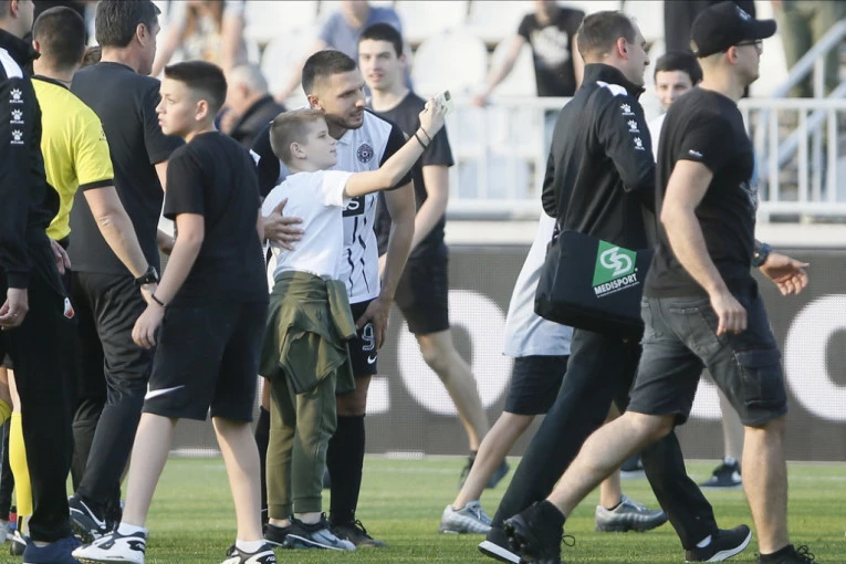 Najmlađi navijači Partizana spontano su utrčali u teren da proslave plasman u finale sa svojim idolima.