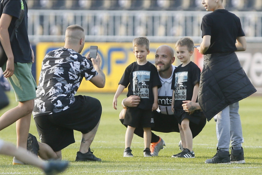Usledili su osmesi, slikanja, pesma i sve po redu, a na kraju su zajednički otišli do južne tribine da pevaju sa navijačima.