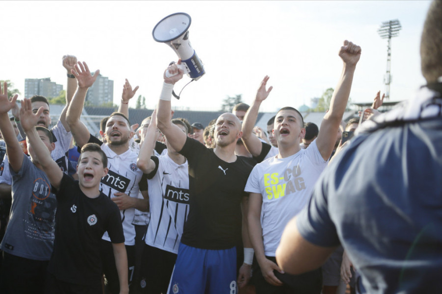 Ipak, oni stariji "grobari" su pored radosti zbog pobede tokom meča skandirali "uprava, napolje":