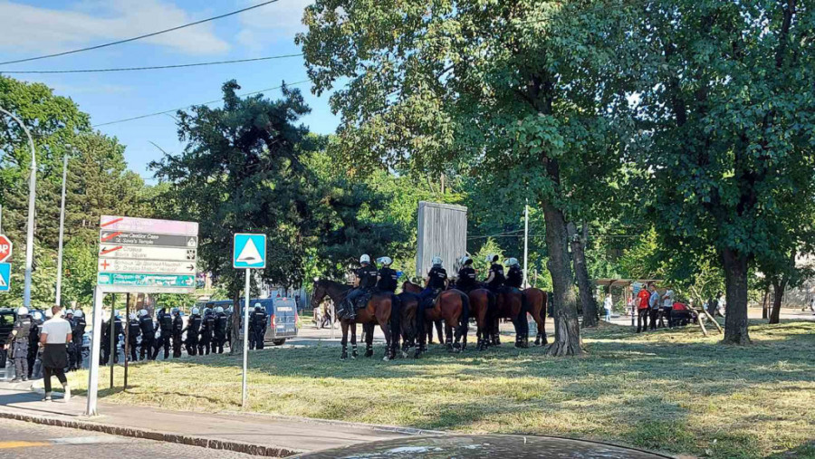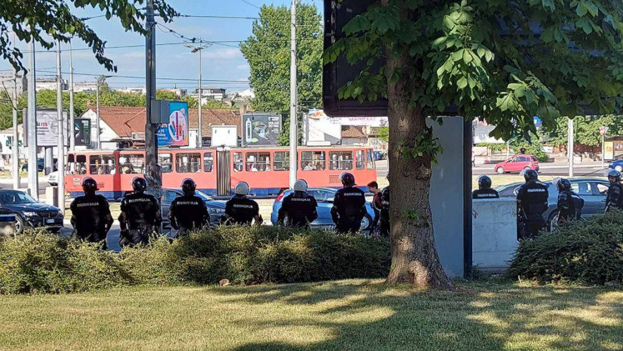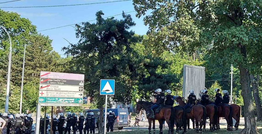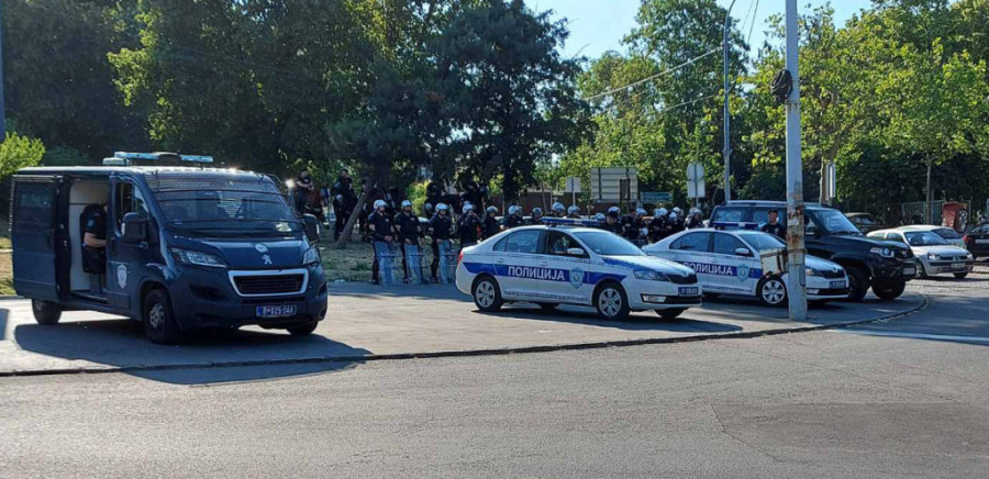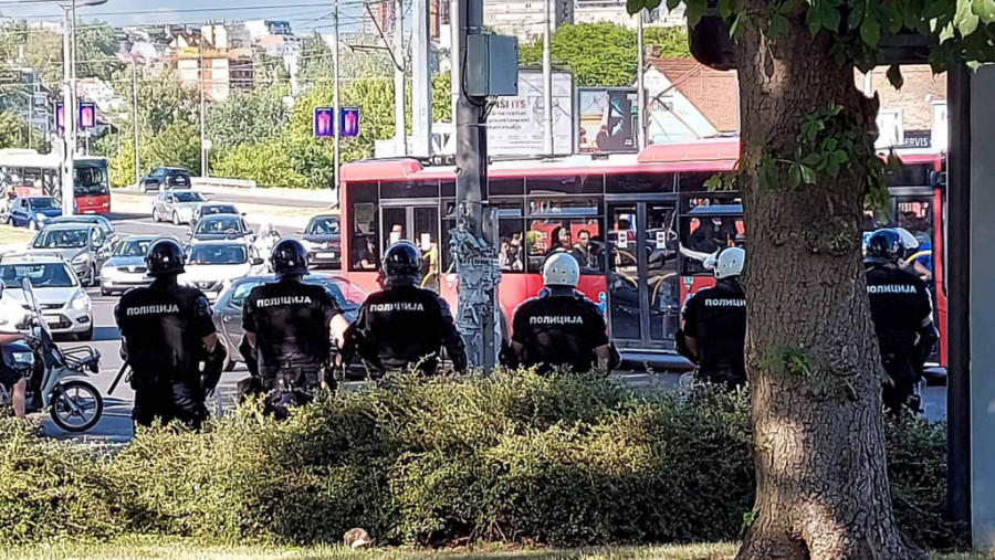 Iz tog razloga policijske snage su raspoređene duž bulevara, od Slavije do Autokomande. Policijski automobili patroliraju putem i motre grupe koje polako pristižu do raskršća puteva koje vode na dve strane Topčiderskog brda.