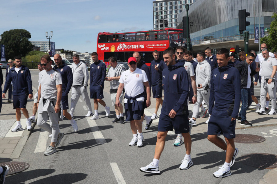 Baš kao i pred svaki meč, igrači predvođeni stručnim štabom su prošetali gradom u kome igraju, a onda odradili lagane vežbe. U Stokholmu ih je dočekalo sunčano, ali znatno svežije nego što je u Beogradu.