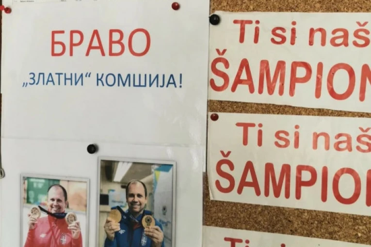 Mikeca je po povratku sa Svetskog kupa u Južnoj Koreji dočekala "okićena" oglasna tabla ilustracijama koje podsećaju da je za mesec dana sa dva velika takmičenja doneo Srbiji četiri zlatne medalje.